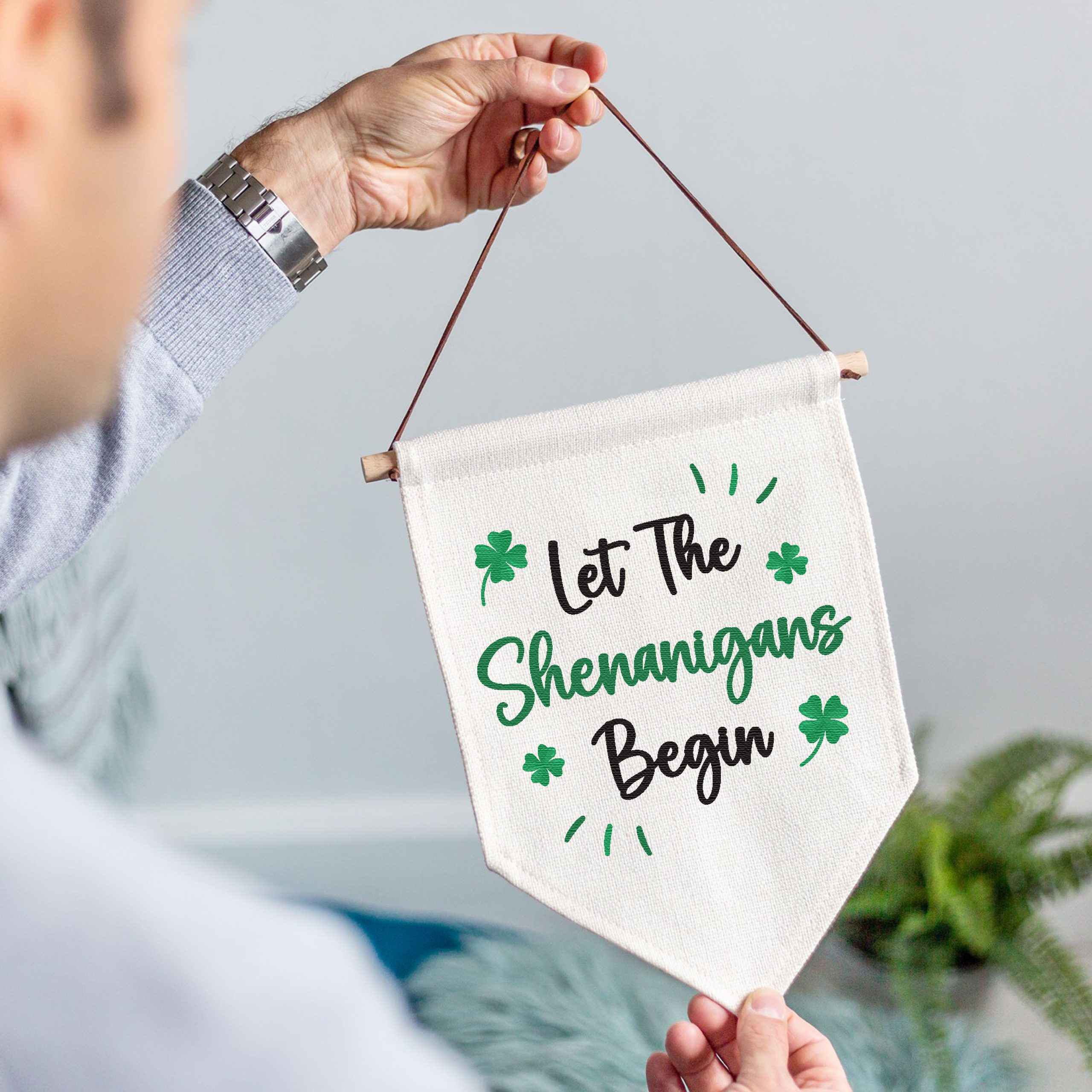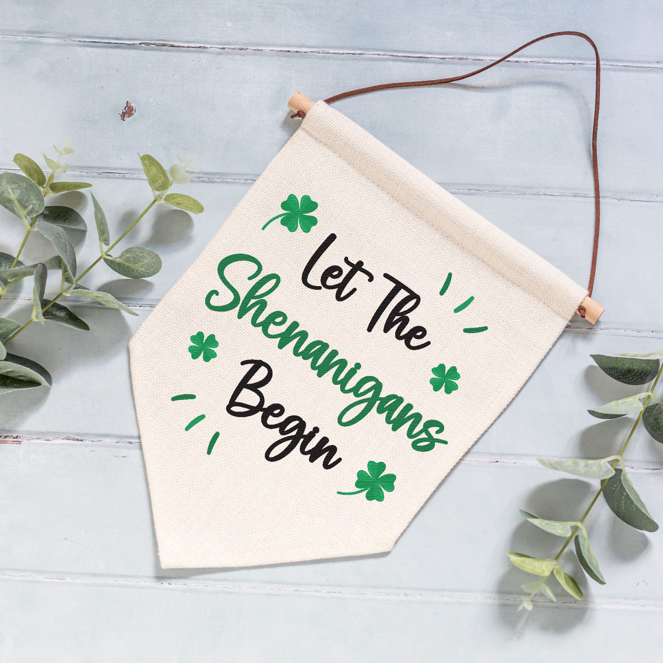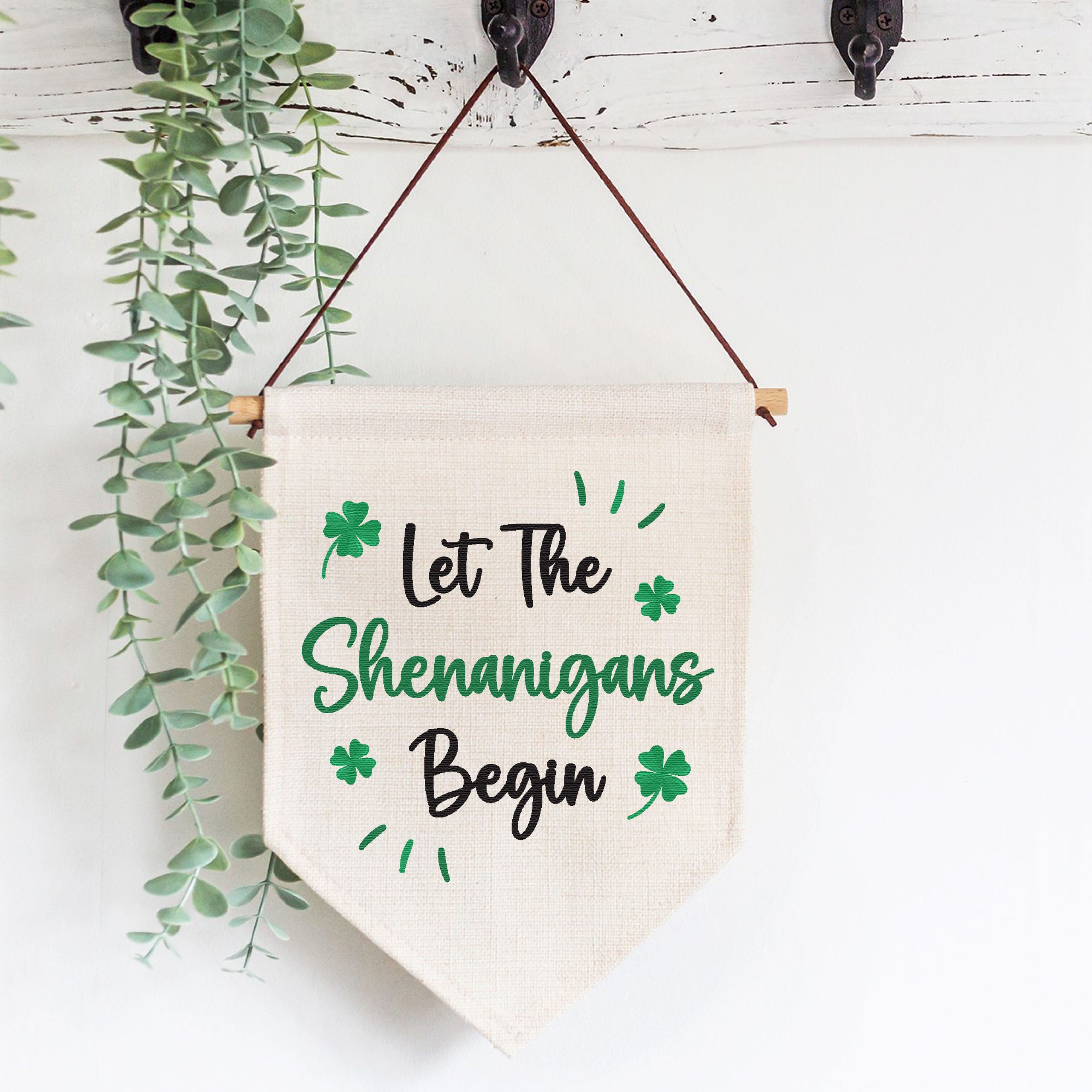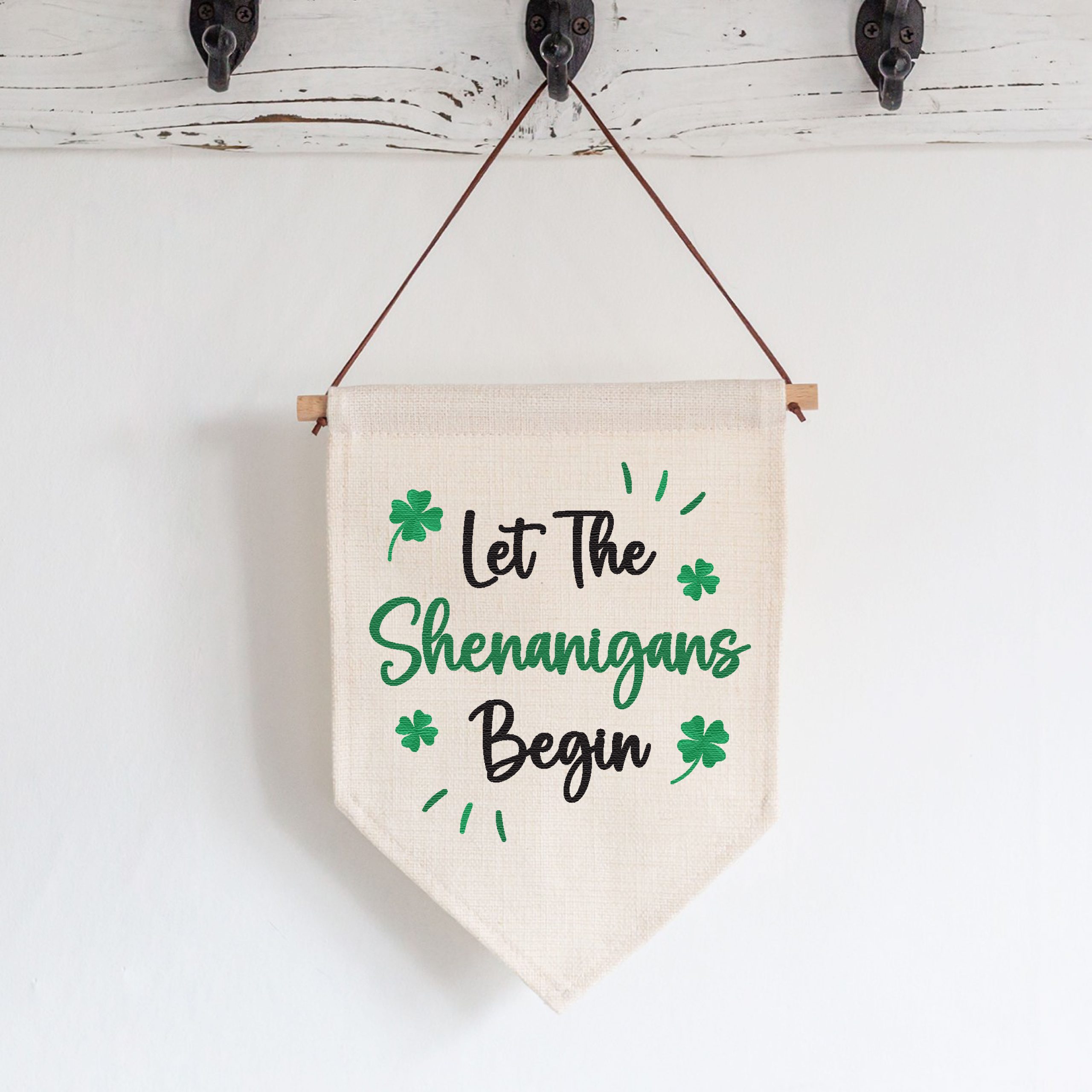 Let The Shenanigans Begin Linen Flag – St Patrick’s Day Wall Art Party Décor
