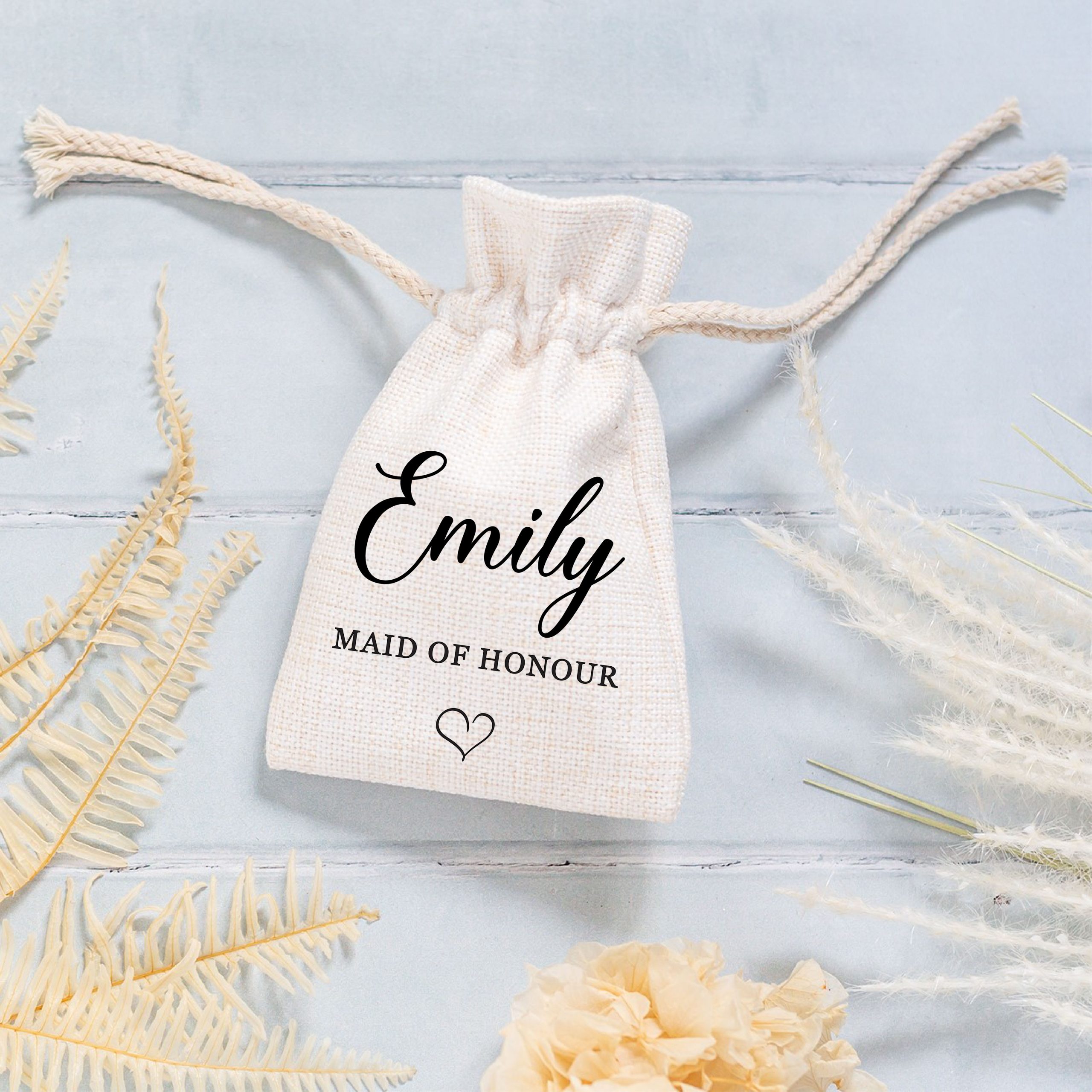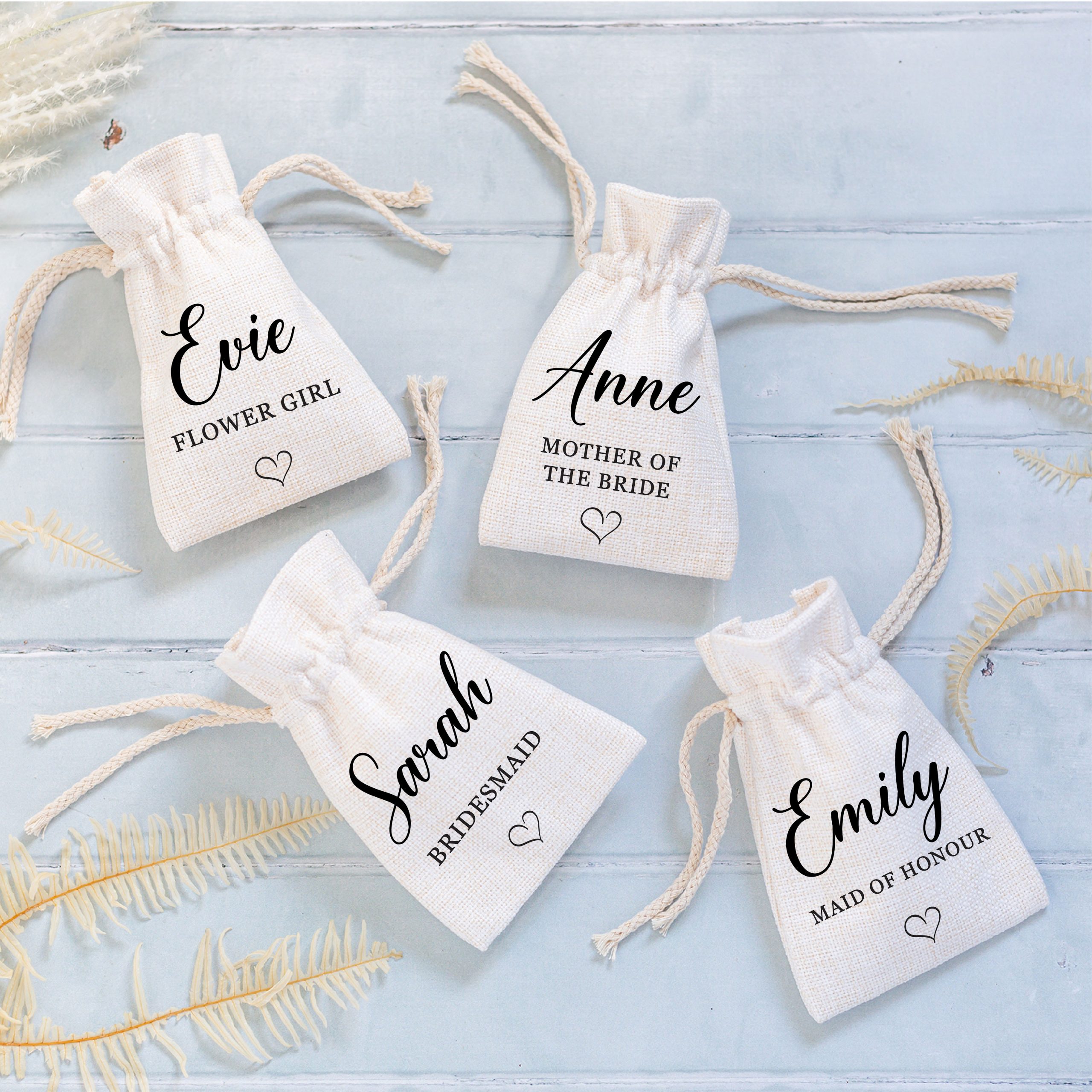- Personalise with the recipient’s name and wedding role e.g. Bridesmaid, Maid of Honour, Flower Girl etc.
