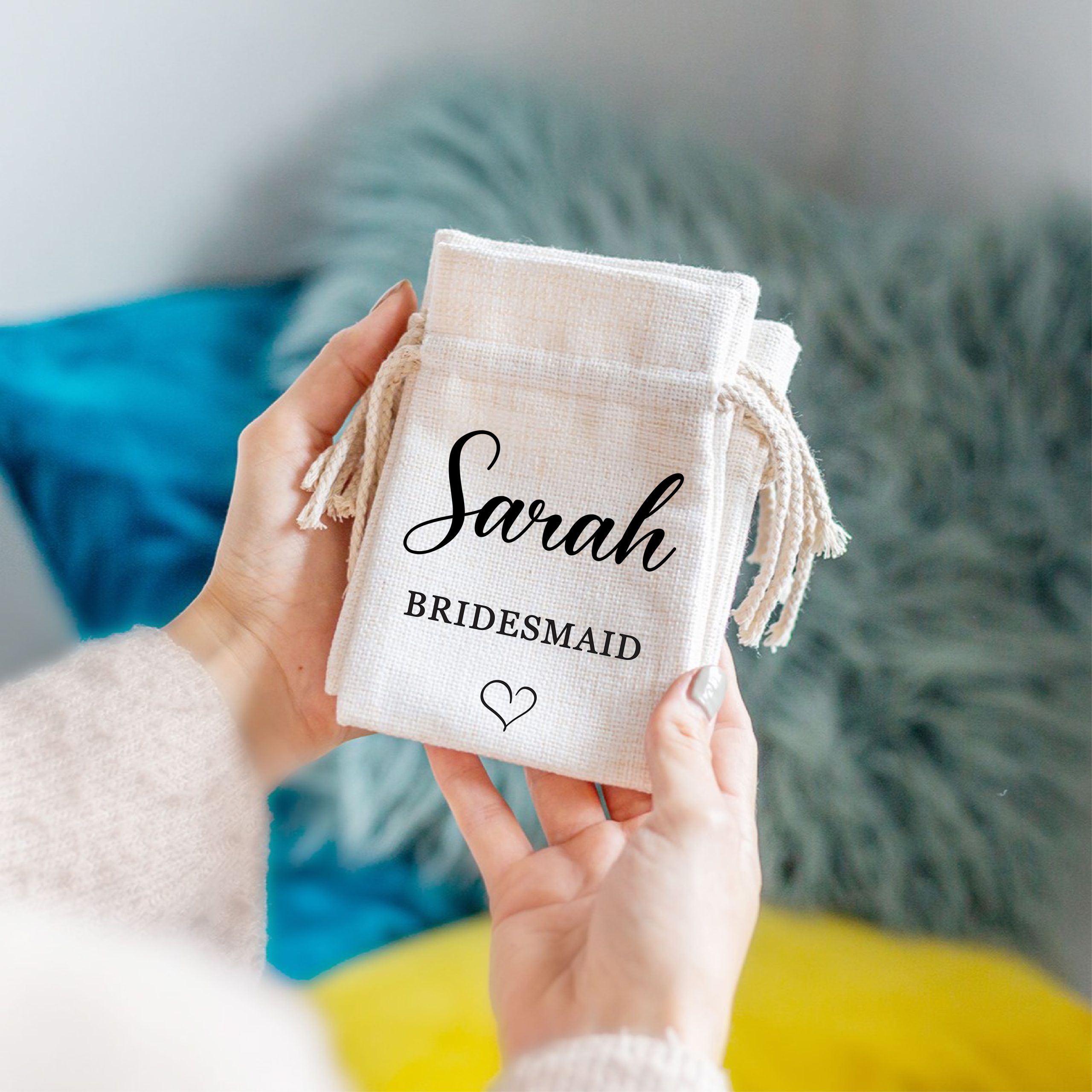 This pretty pouch comes personalised with the recipient’s name and wedding role.