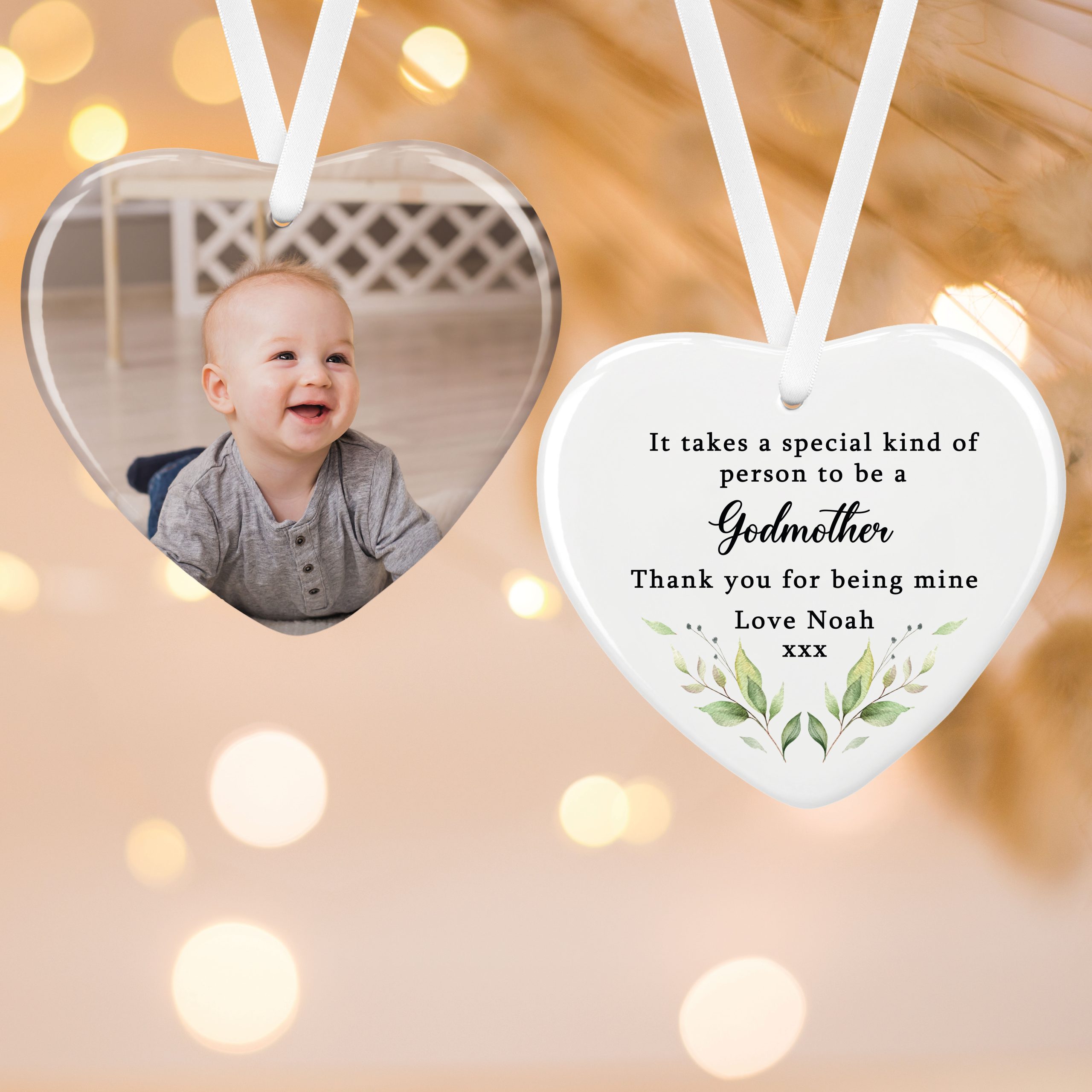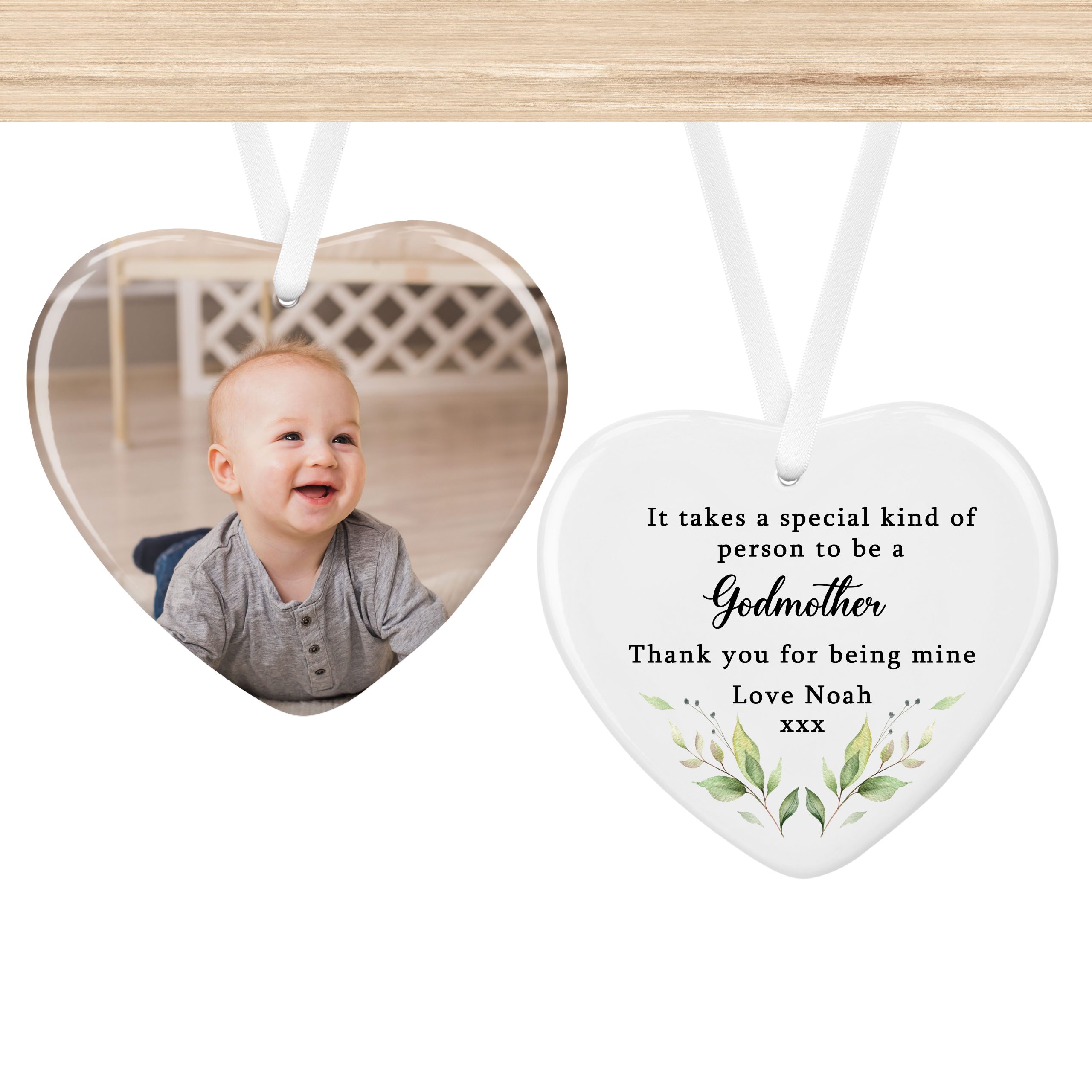 Finding the perfect christening gift for your godmother from a godson or goddaughter can be tough, but a personalised keepsake is a truly special way to show your appreciation and love. Our high-quality ceramic hanging decoration is a beautiful and sentimental gift for a godparent, perfect for capturing those precious moments. A unique birthday present or a thoughtful baptism present, this bespoke decoration is a lovely way to say thank you for being a wonderful godmother.