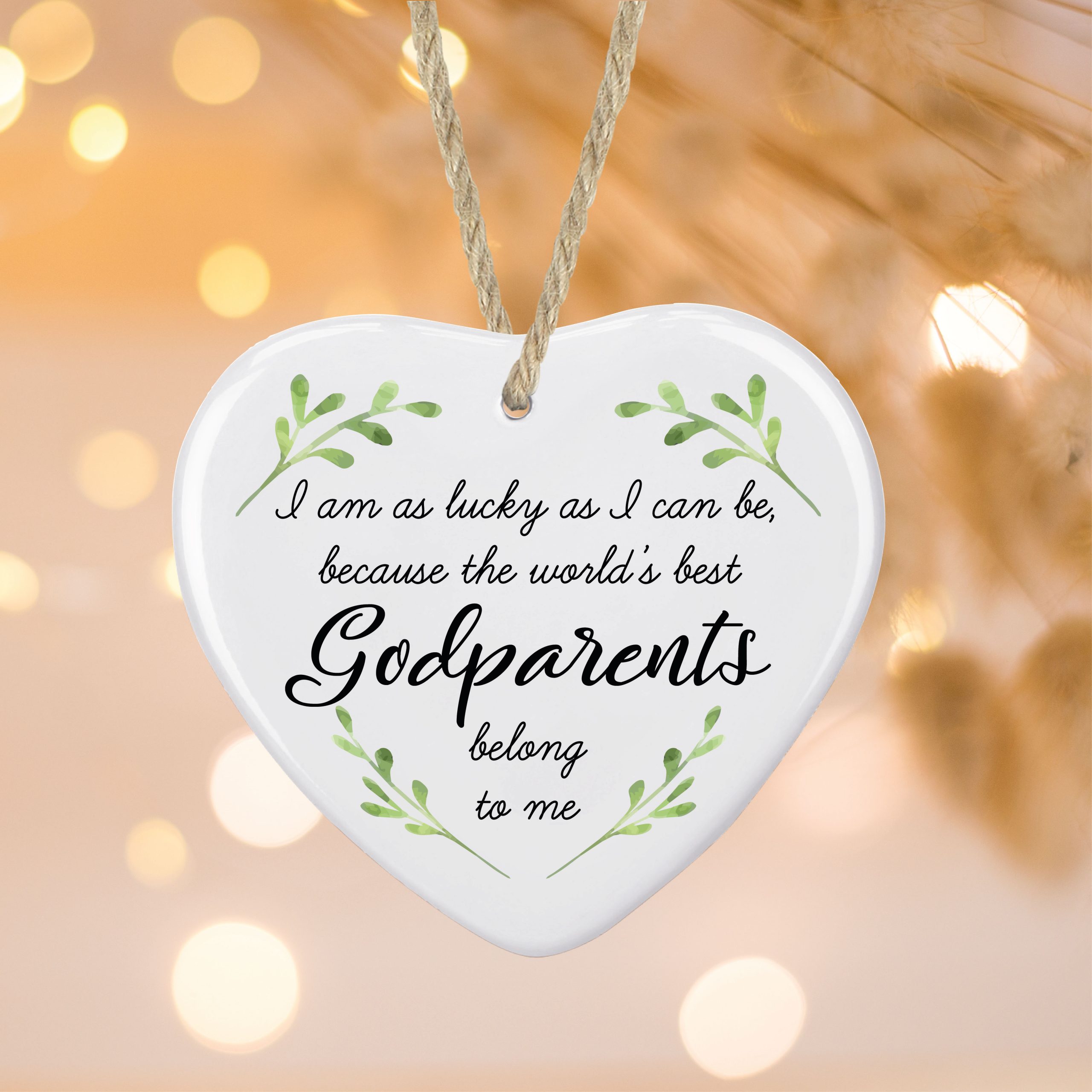 Personalised Godparents Ceramic Heart Hanging Christmas Tree Bauble Decoration Ornament