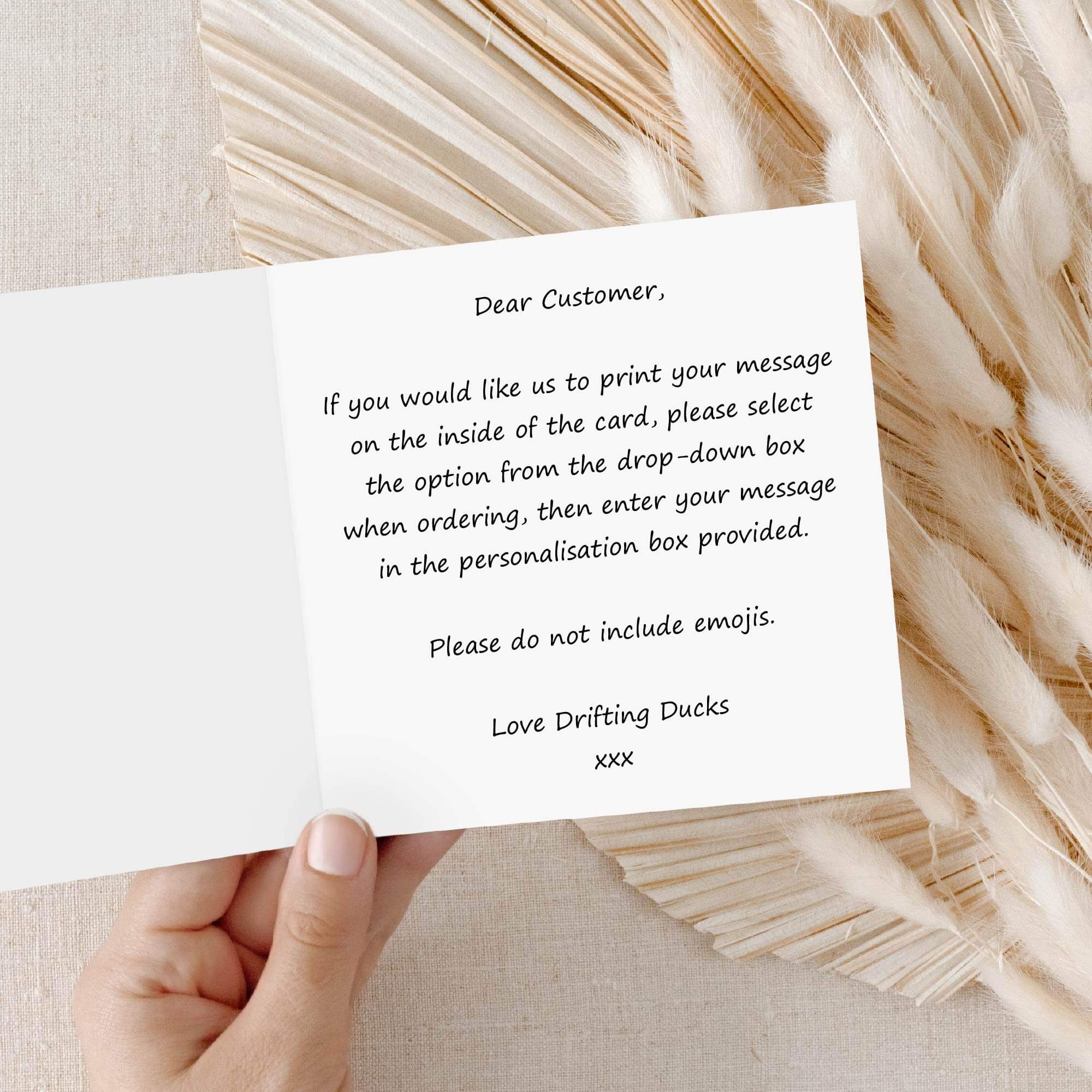 You can choose to leave the card blank or have a message printed inside when ordering.