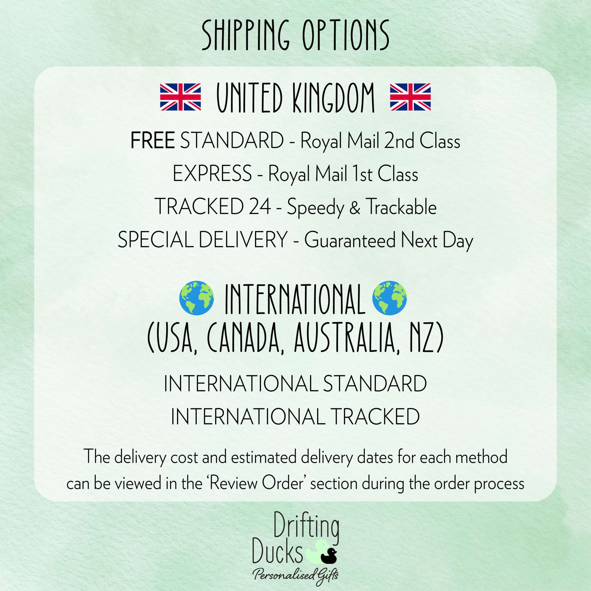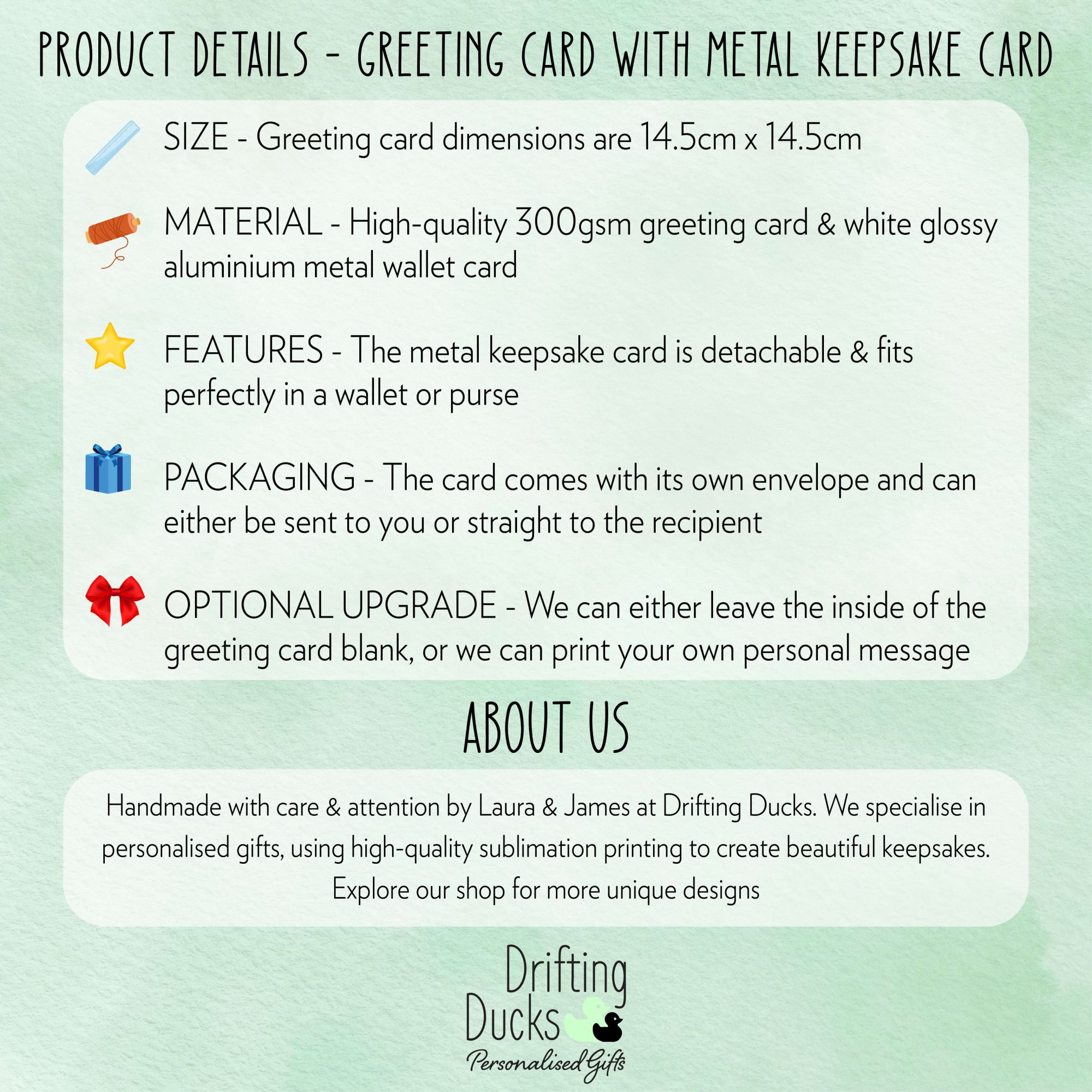 Handmade with love by James & Laura at Drifting Ducks. We specialise in personalised gifts using