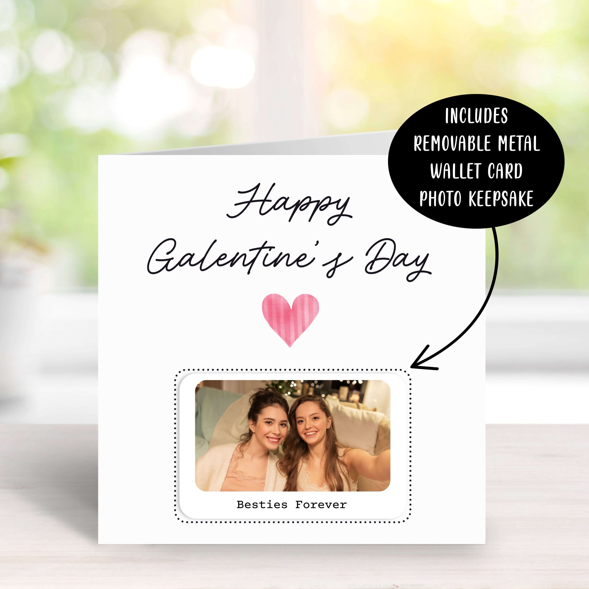 A small card with a big meaning, this Galentine’s keepsake is designed to be carried close and remembered