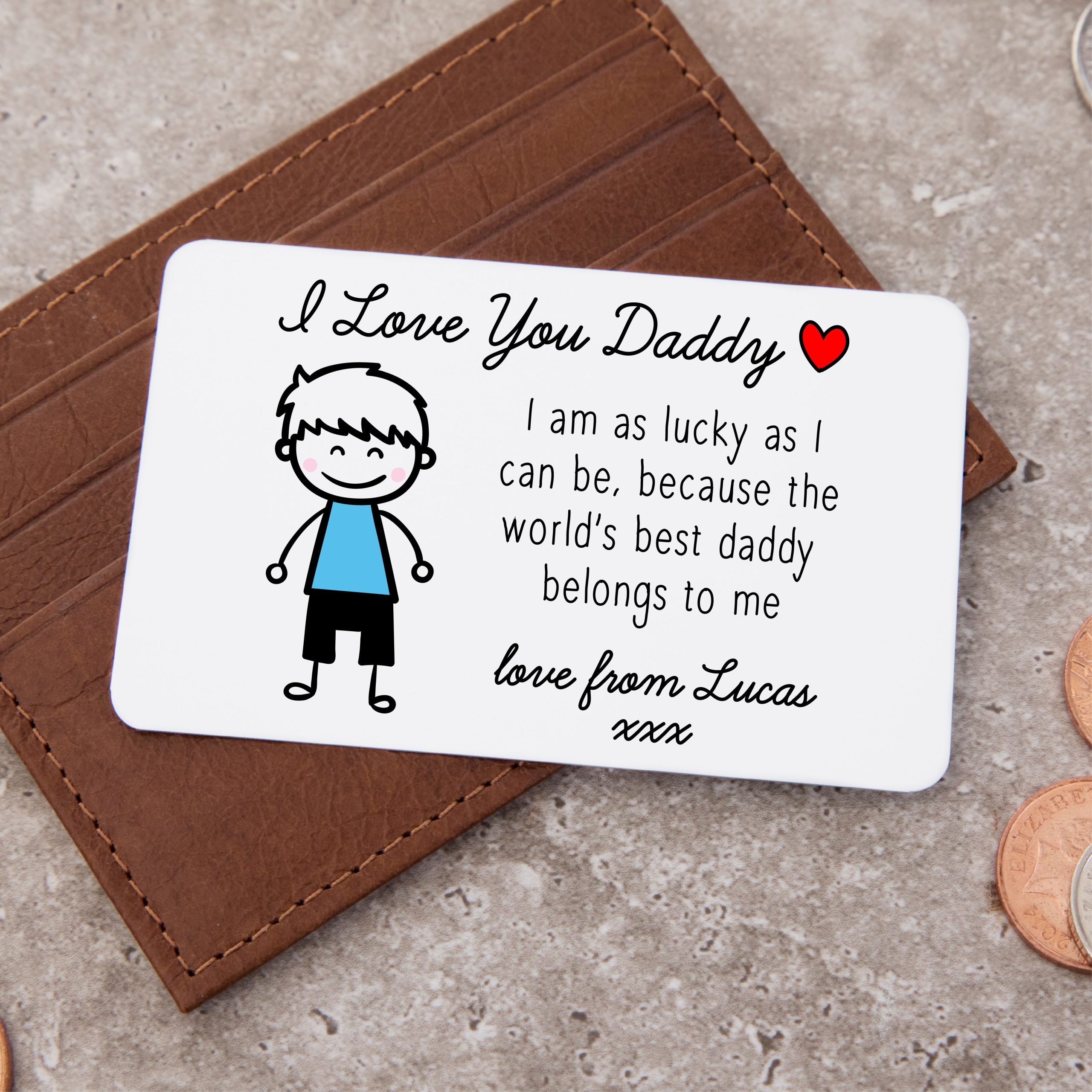 - The perfect size for keeping in a wallet, so their special message can be carried by Dad wherever he goes