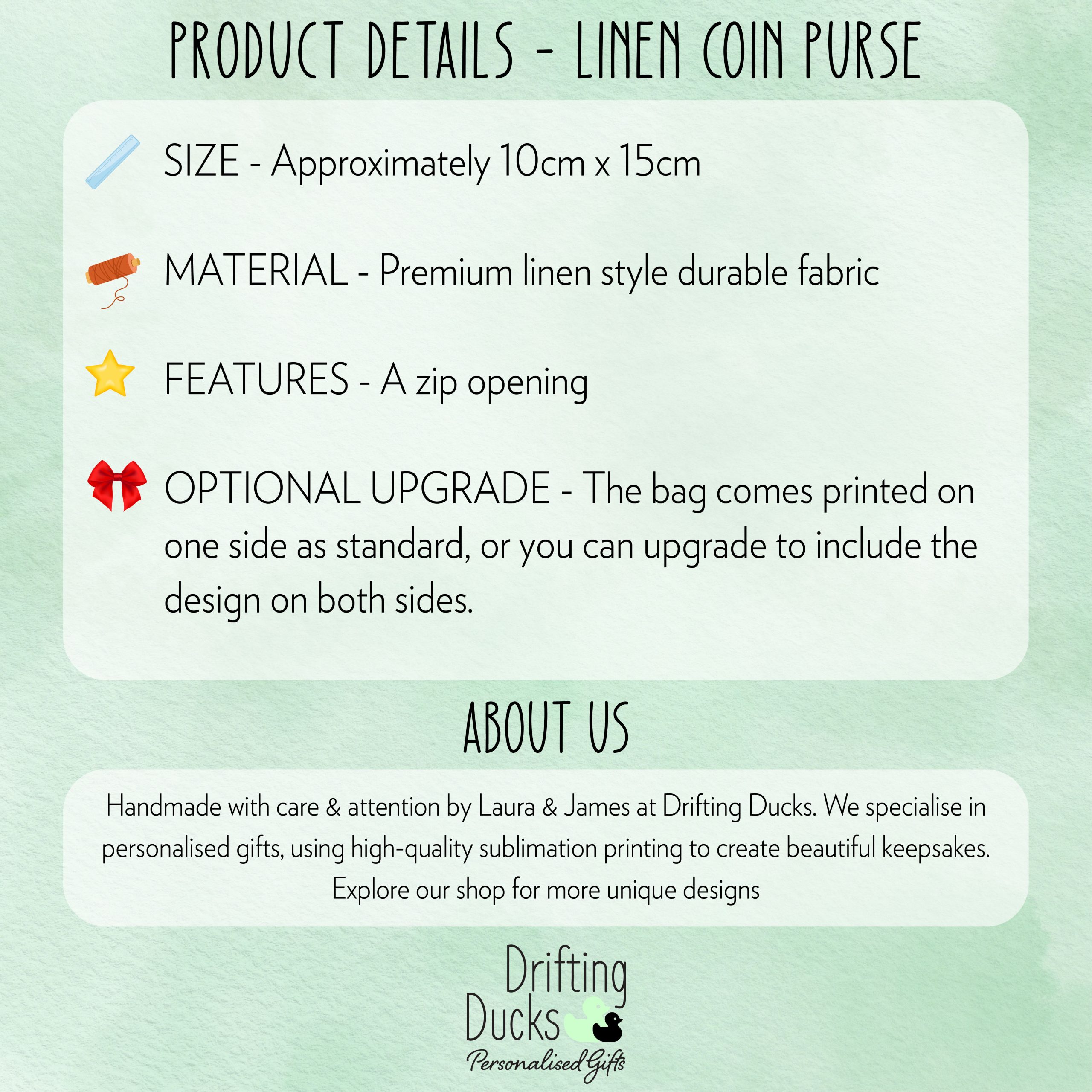 Give a gift that is truly their own. This bespoke coin purse is a fantastic way to celebrate a special little person and create a keepsake that will be treasured for years to come. Order yours today and bring a smile to their face!