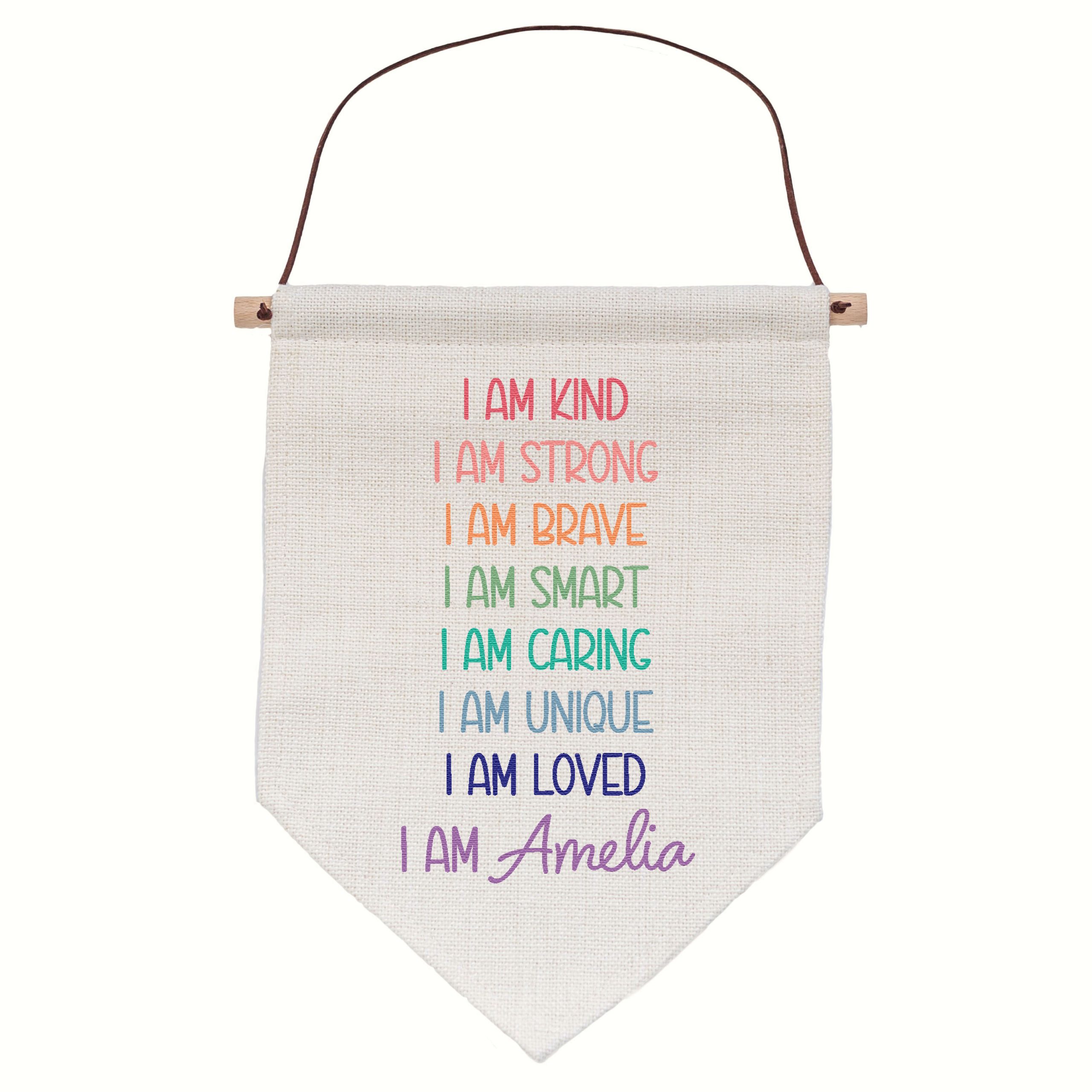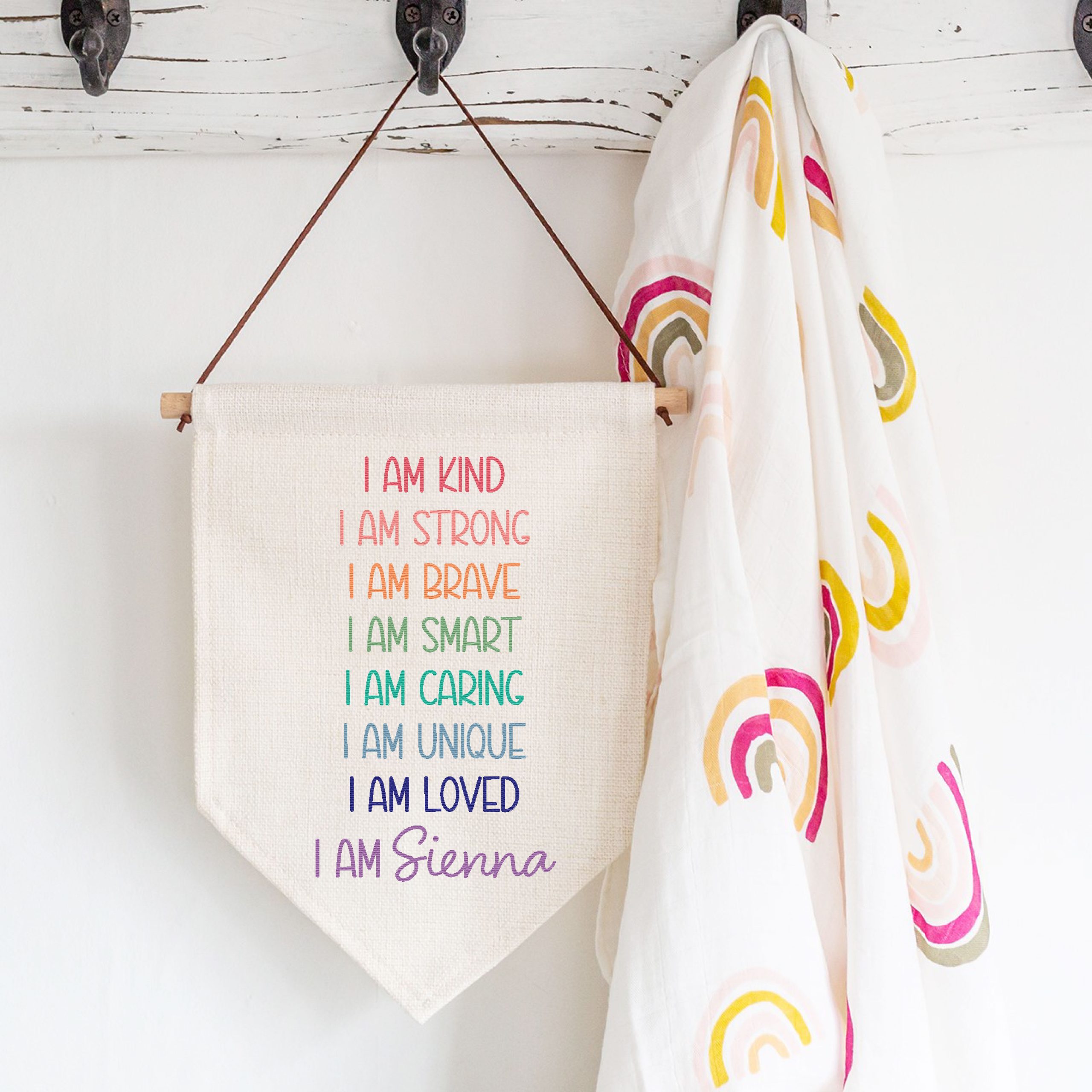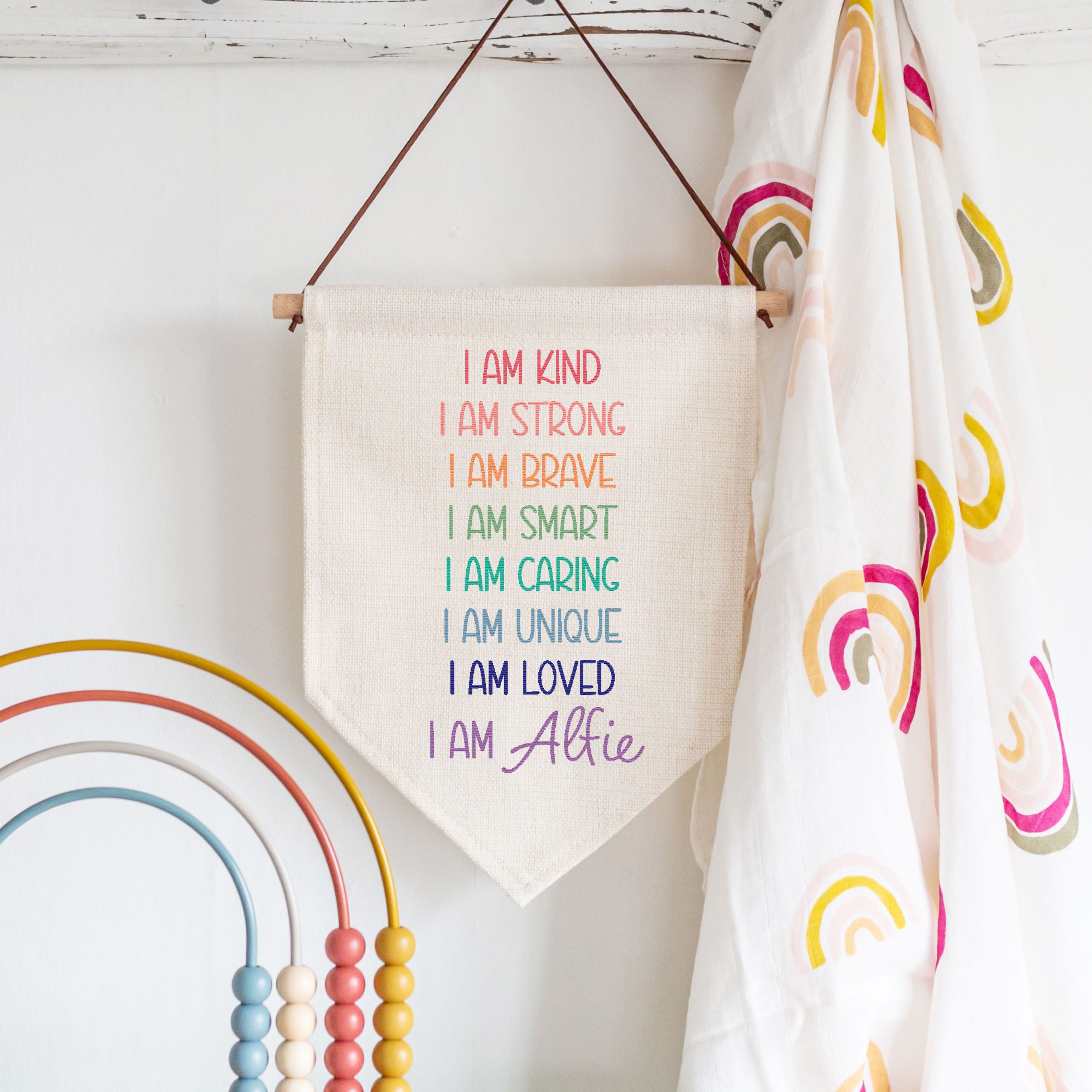This unique and thoughtful personalised gift is a beautiful way to show a special girl how much she is loved. Made with high-quality linen-style polyester, this custom flag features a powerful message of self-belief and positivity that will inspire her every day. Perfect for a birthday, starting school, or as a new bedroom decoration, this wall hanging is a meaningful keepsake for a daughter, granddaughter, or niece that celebrates her uniqueness. ✨