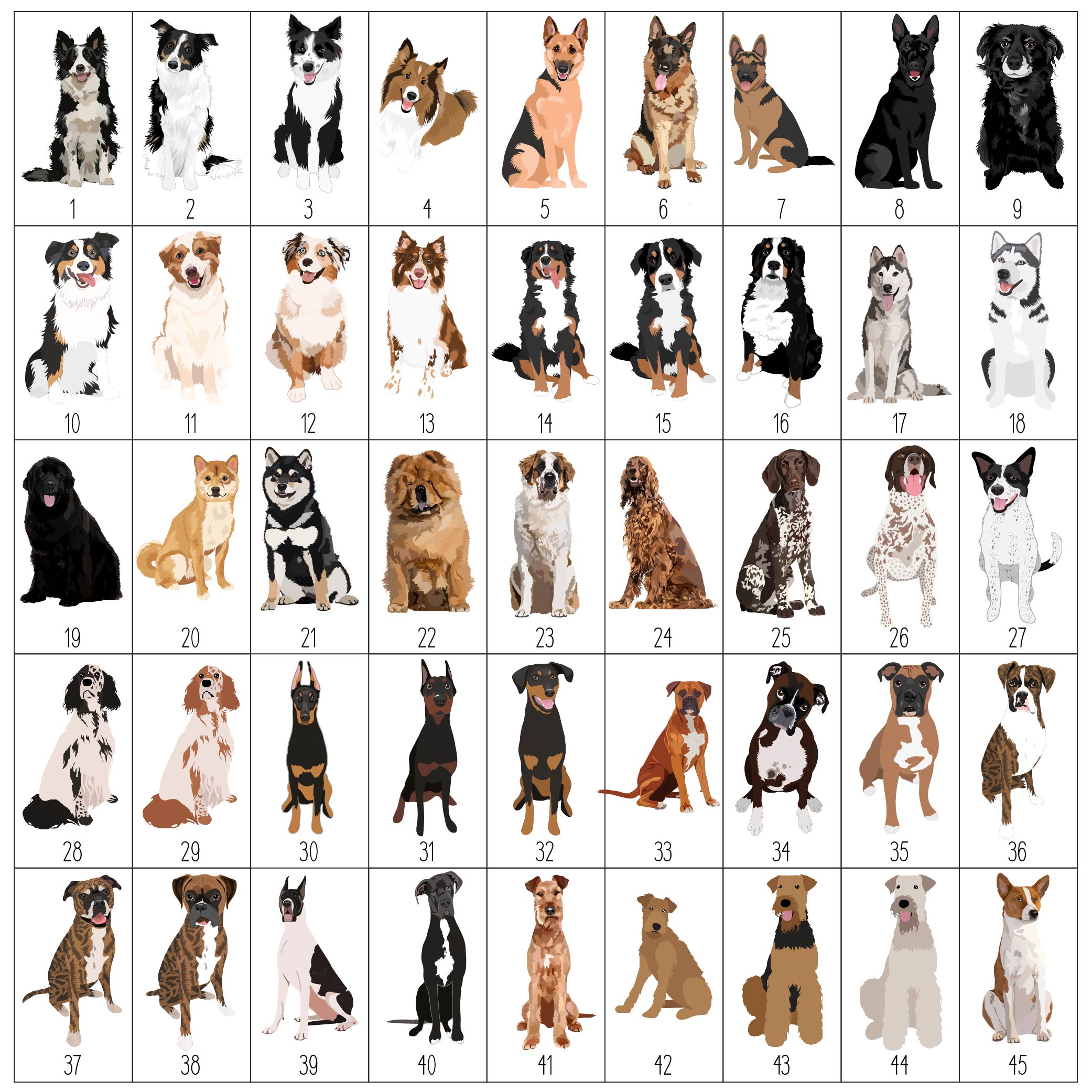 - Personalise with the both the dog’s names & dog images. You can choose from over 200 images, making this a truly personal gift. We can print a maximum of 3 dogs.