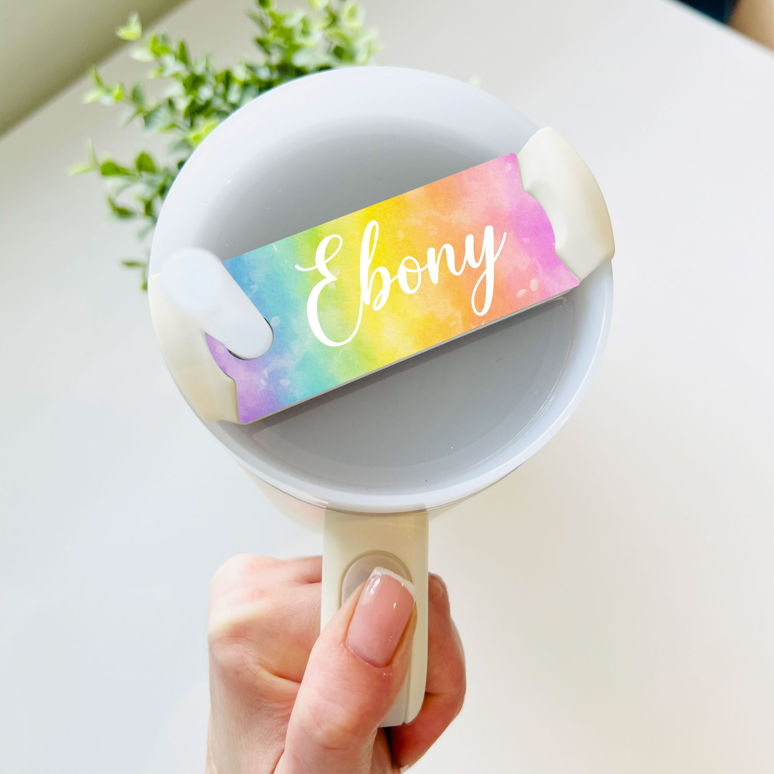 Personalised Name Rainbow Metal Tumbler Cup Topper Plate Tag Gift