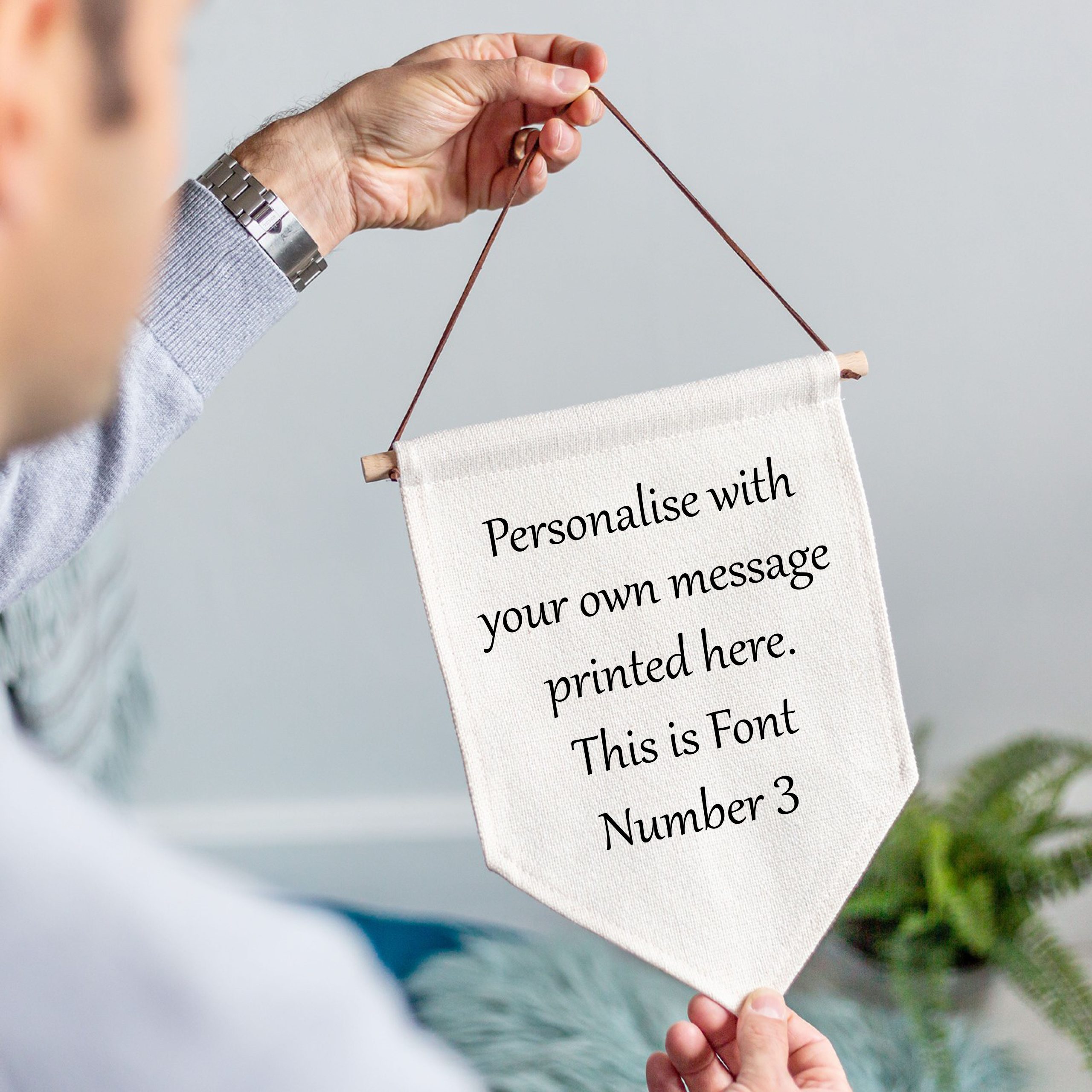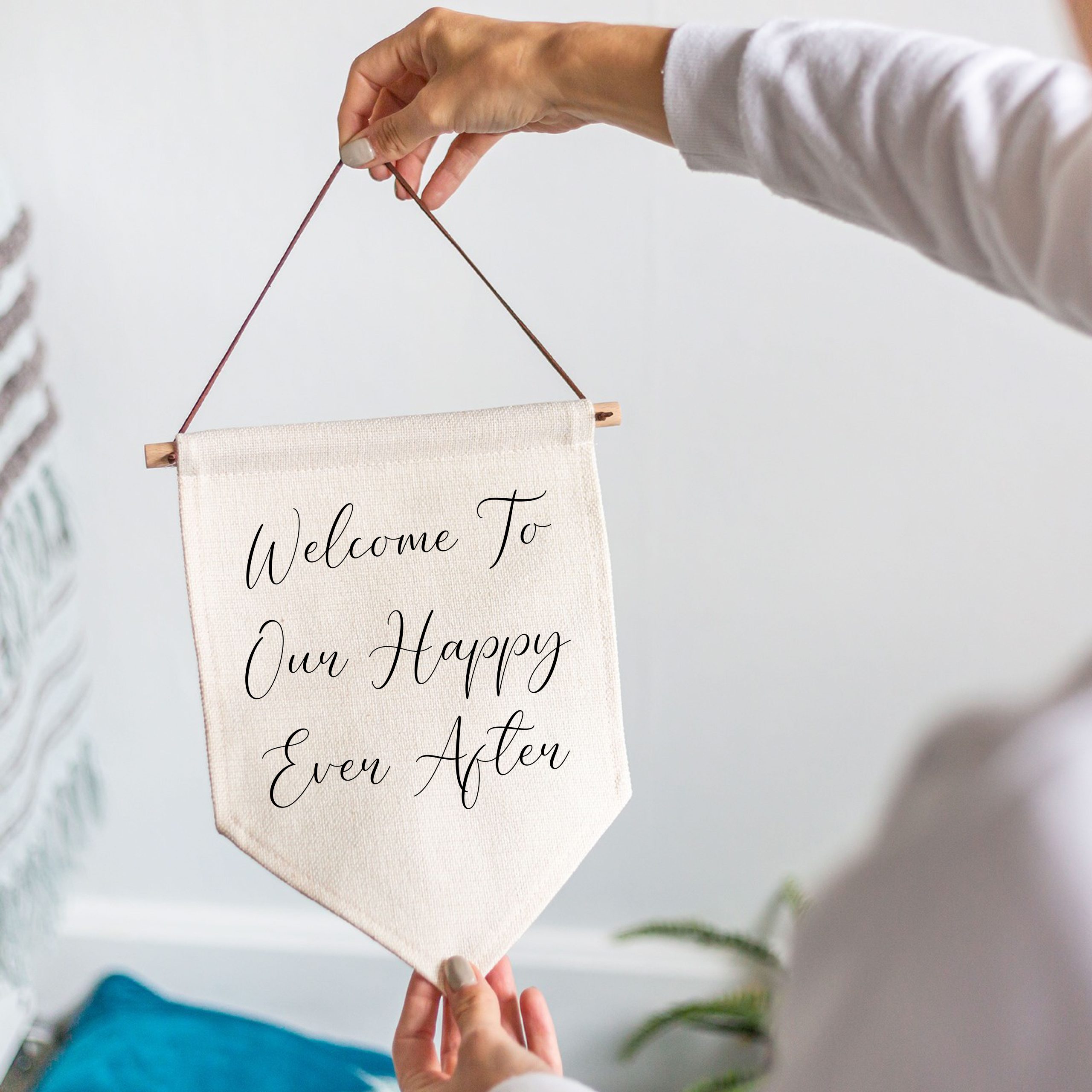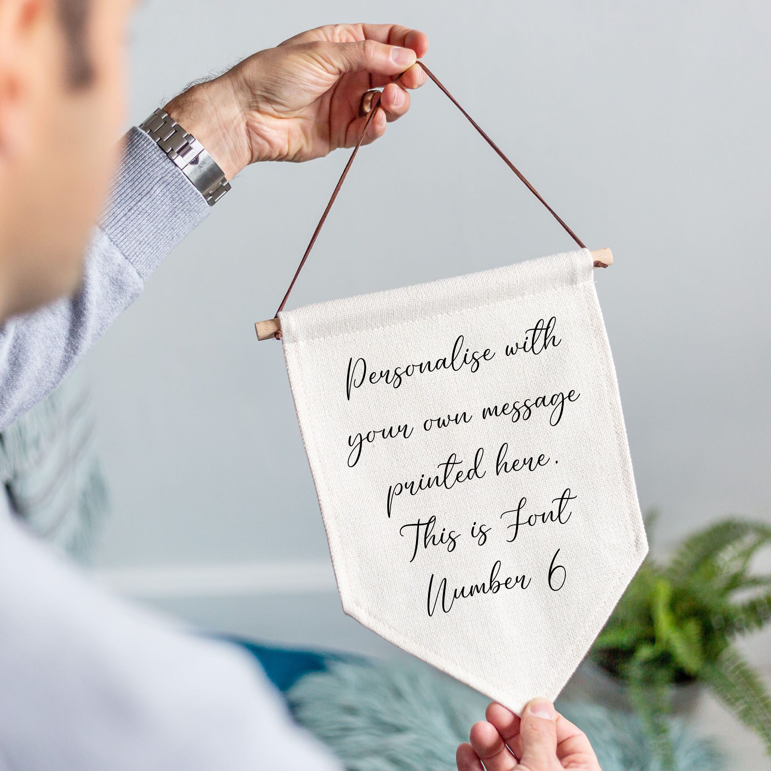 Made from soft (yet sturdy) fabric, this pennant sign looks beautiful hung on a wall or a door handle.