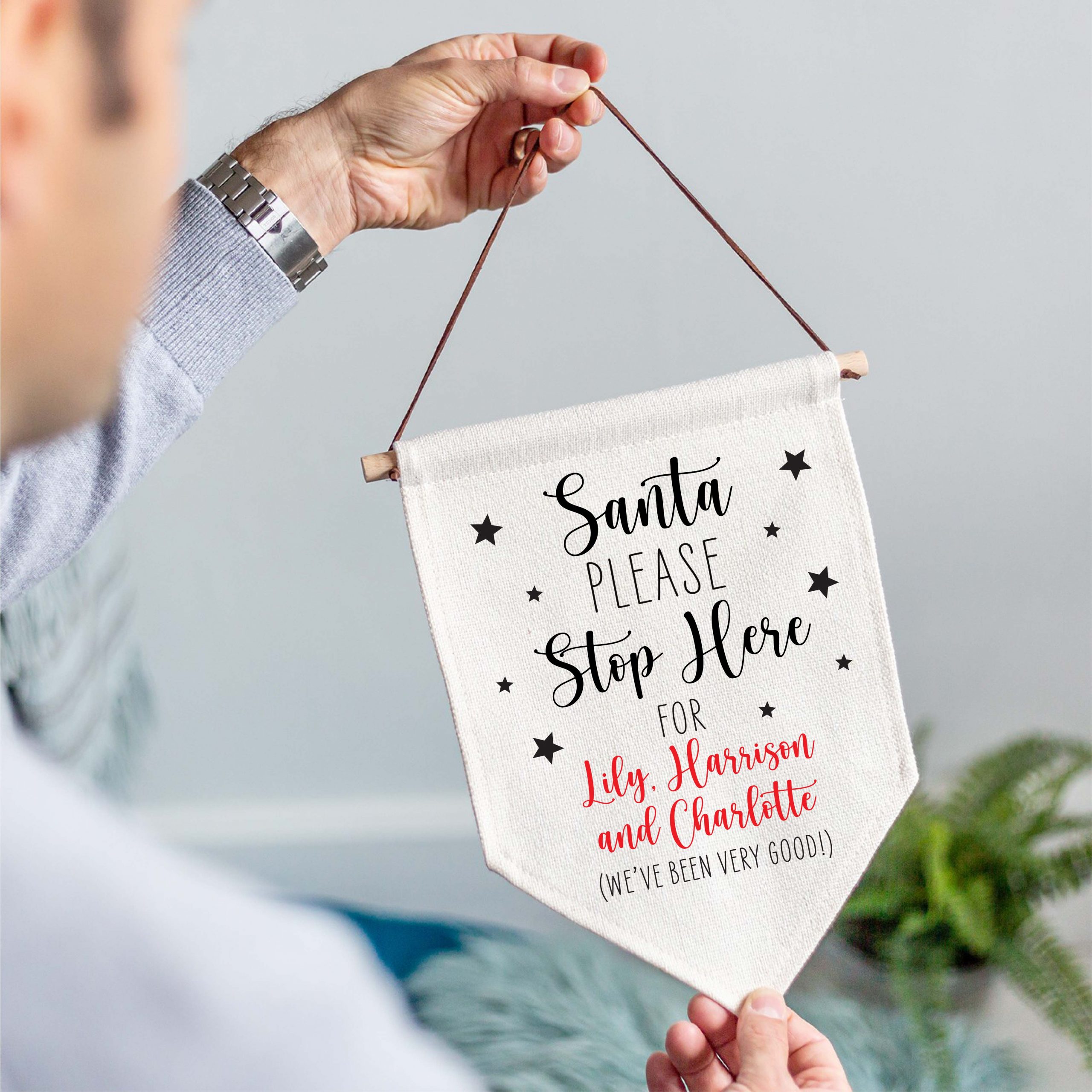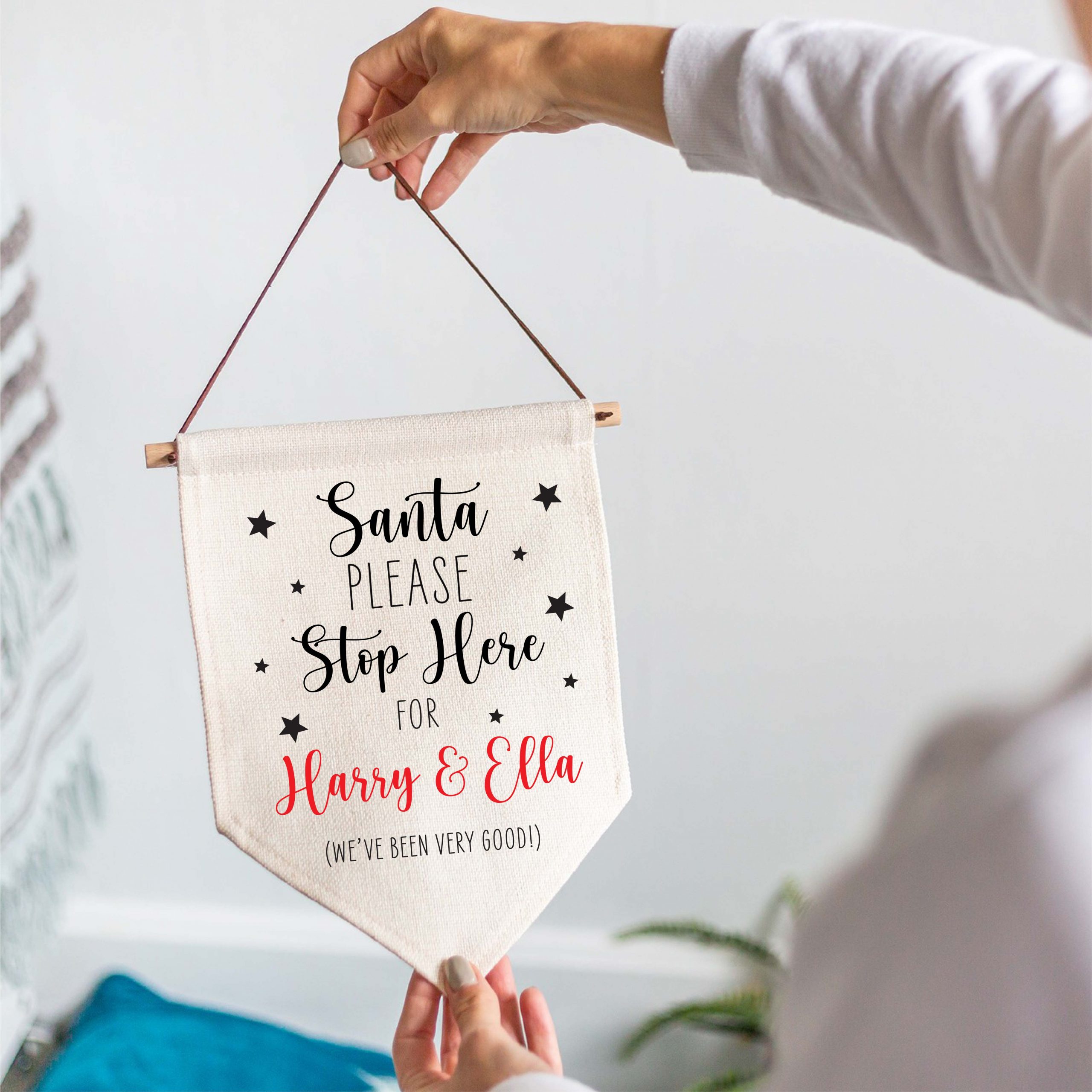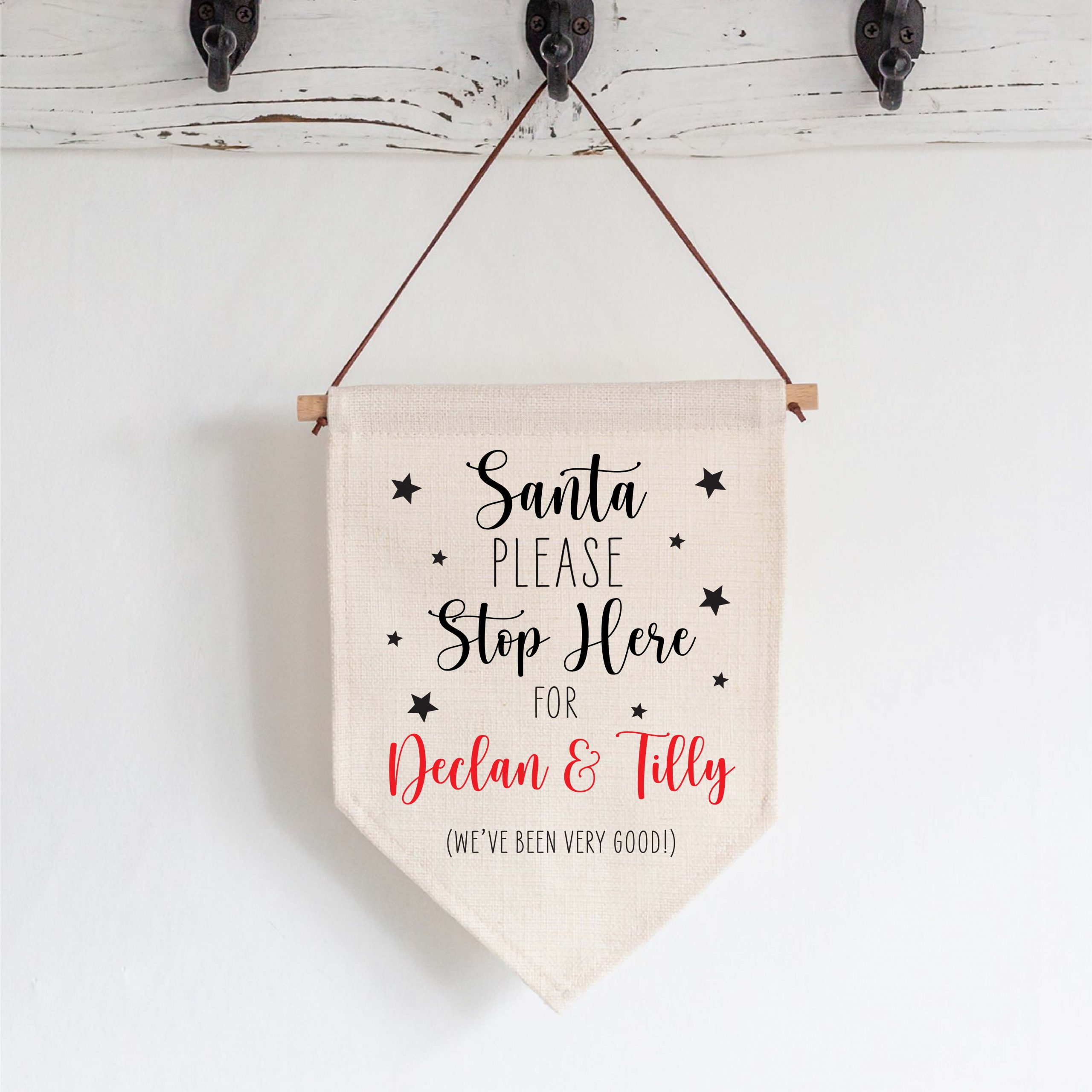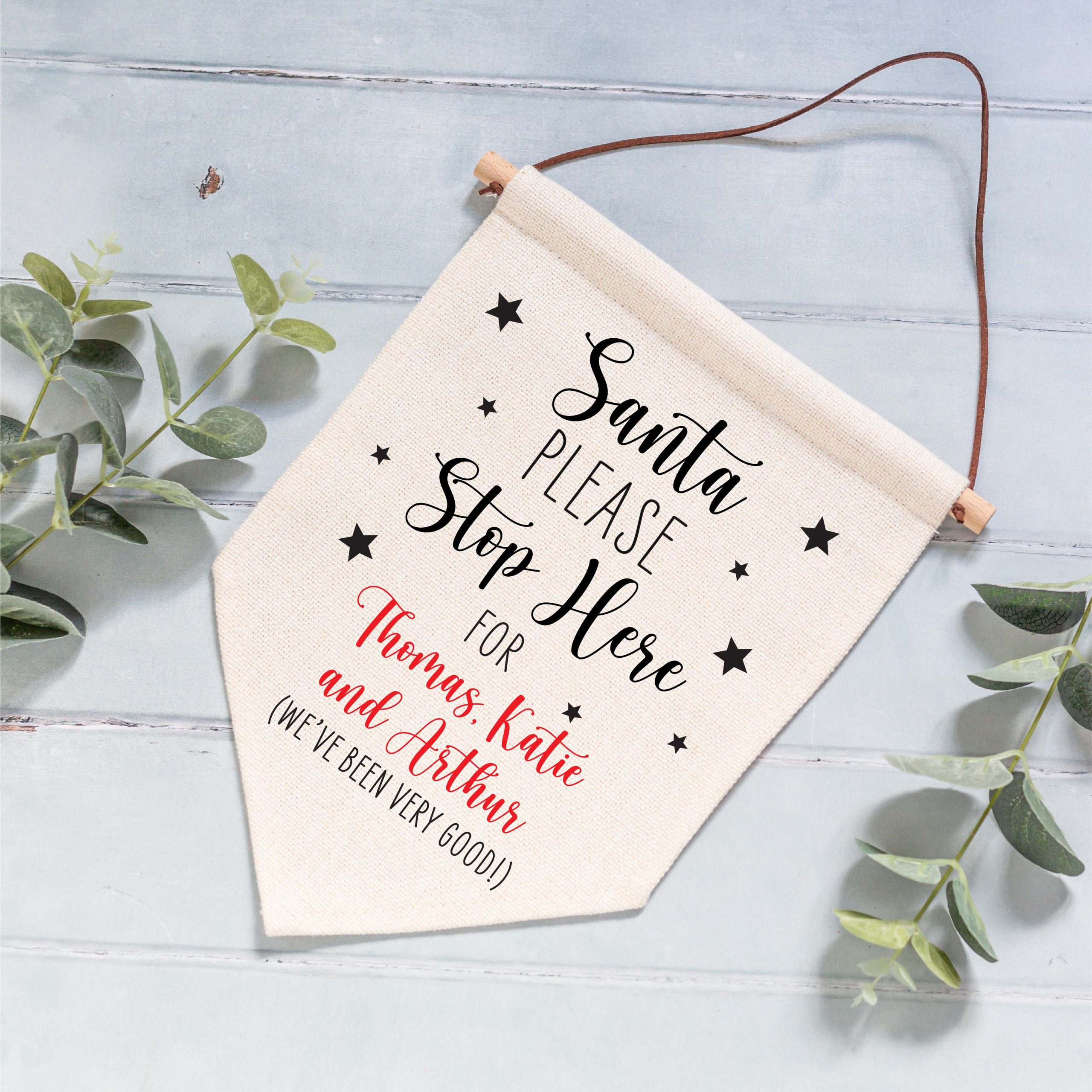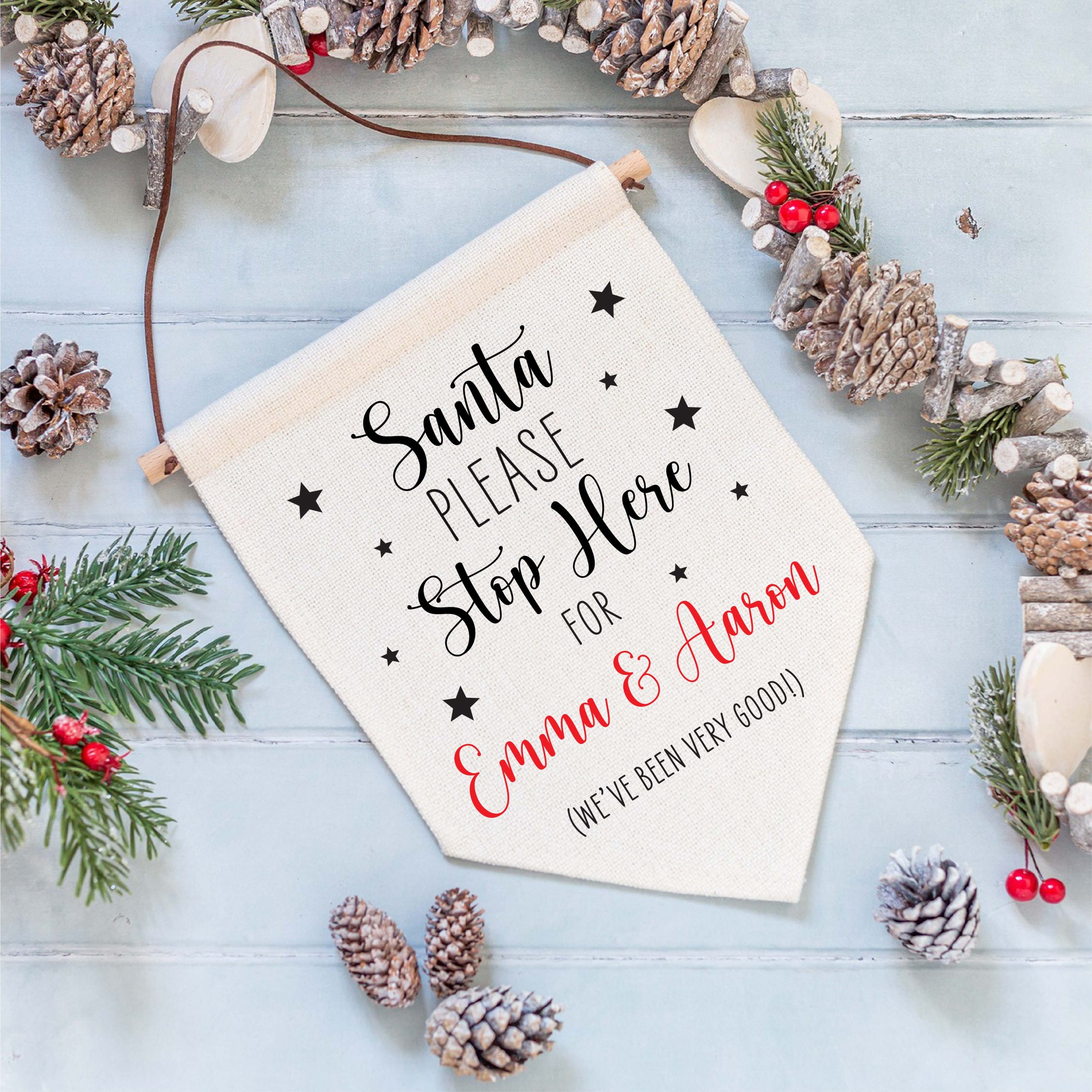 Make sure Santa knows exactly where to stop this Christmas with this personalised “Santa Stop Here” hanging sign