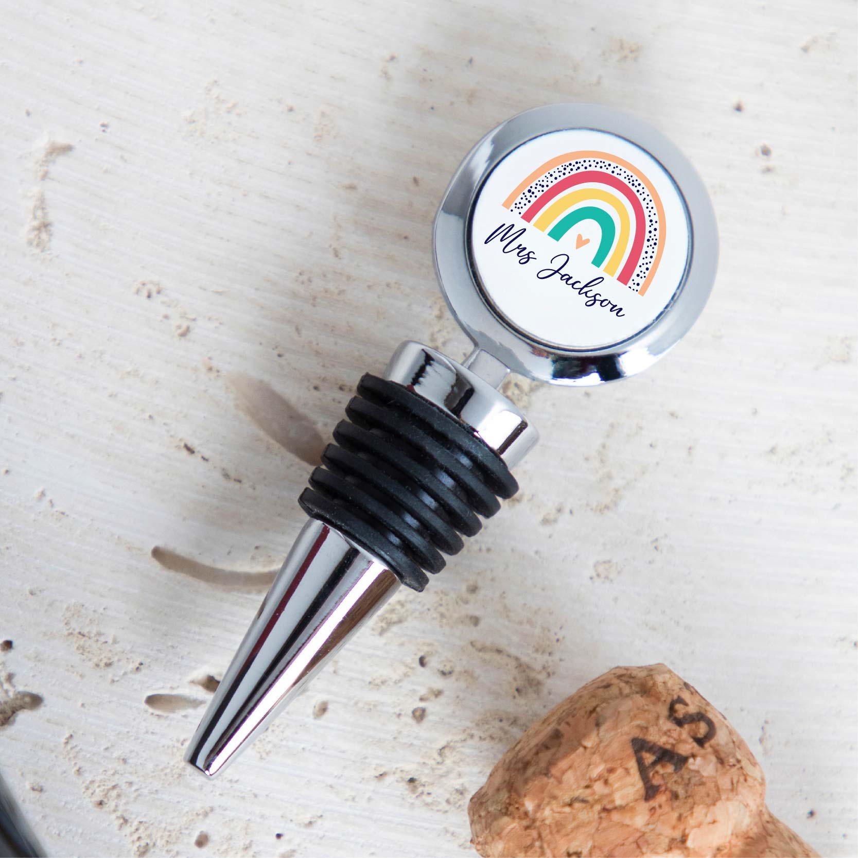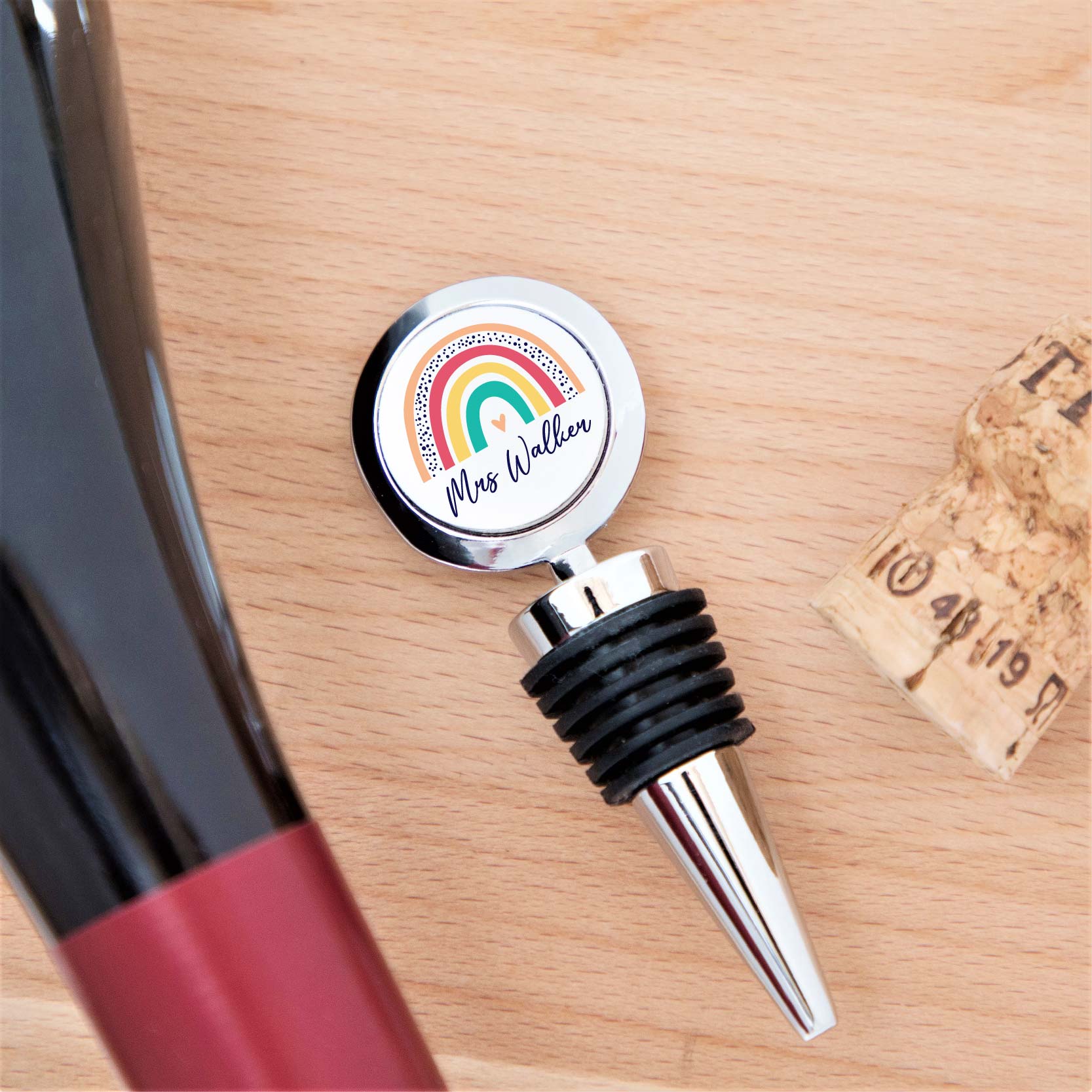 Bring a smile to your teacher’s face with this thoughtful and practical keepsake 🎁 A personalised rainbow bottle stopper is a charming way to say thank you, celebrate a special occasion, or simply brighten up someone’s day. With its vibrant design and custom name feature, this piece is both useful and sentimental – the perfect balance for a memorable gift.