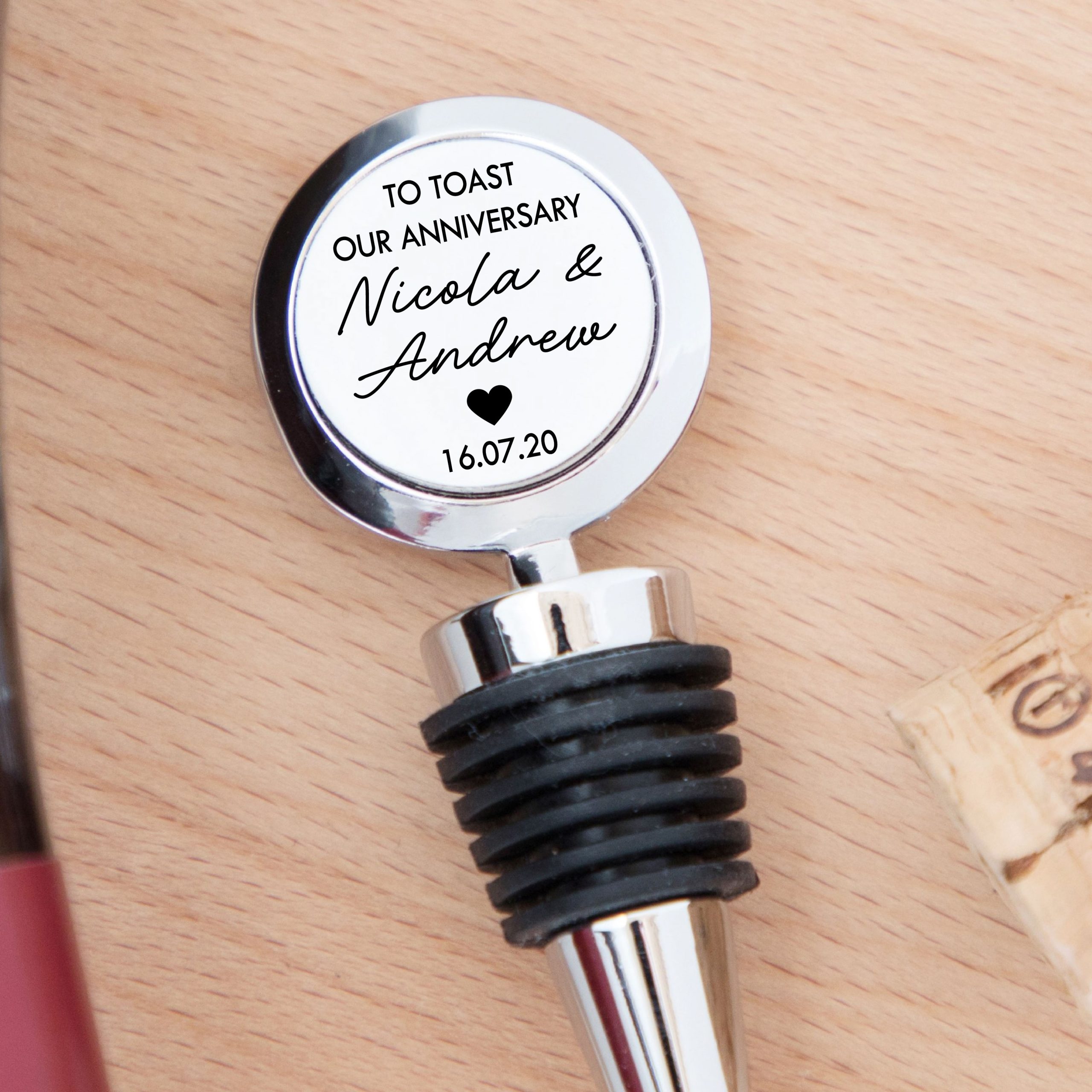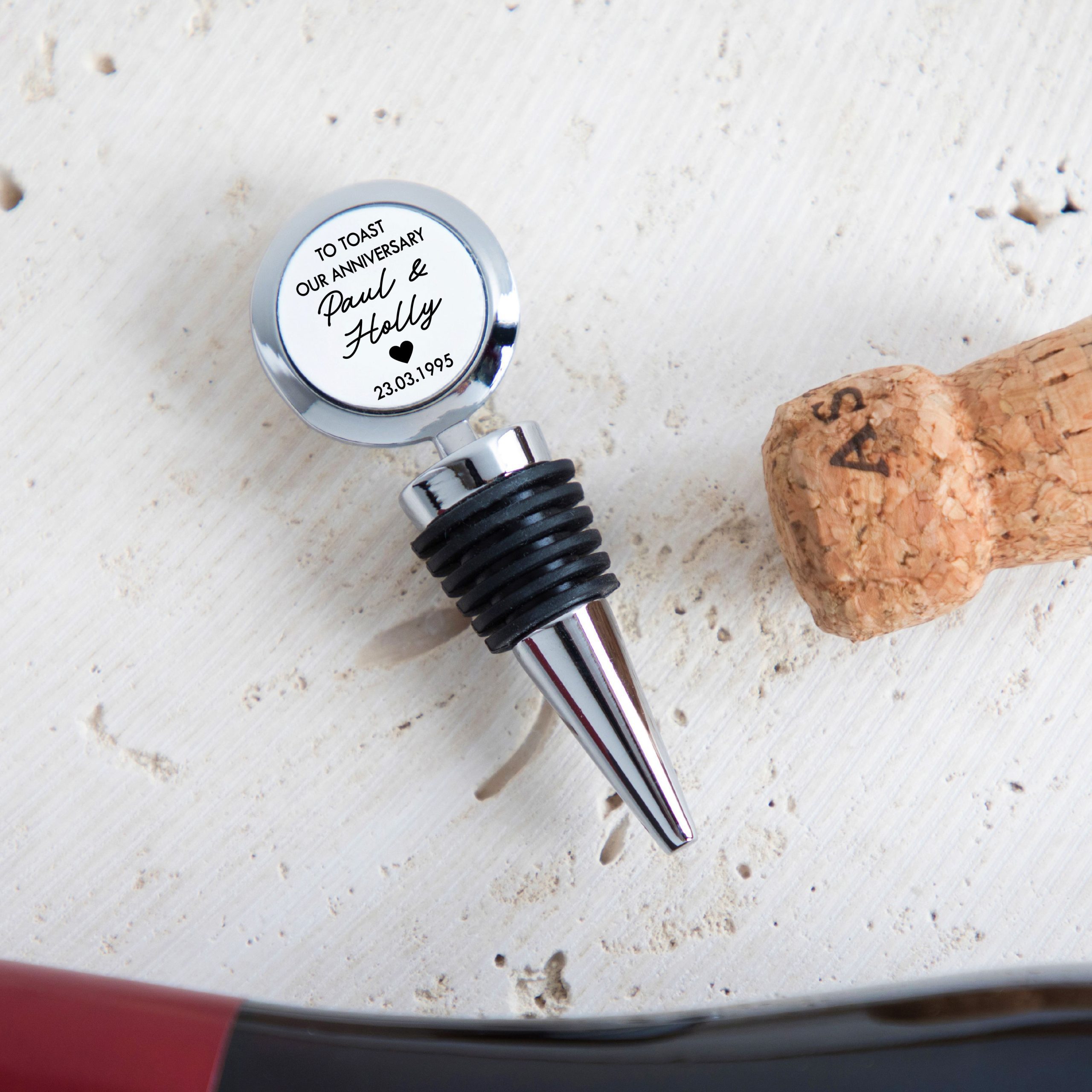 Celebrate a milestone with a truly personal and heartfelt gift that says “Cheers to us!” 🥂 This high-quality metal bottle stopper is more than just a home bar accessory; it’s a beautiful keepsake, marking a special anniversary, whether it’s your first, tenth, or fifty-second. Perfect for any couple, this bespoke gift is a thoughtful way to commemorate a wedding anniversary, engagement, or wedding day, ensuring their favourite bubbly stays fresh long after the last toast. It’s a unique present for your husband, wife, or a special couple that they’ll treasure for years.