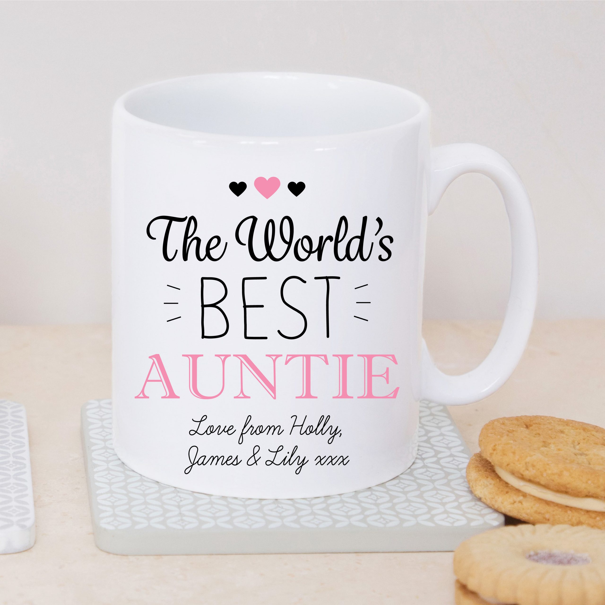 - This personal mug is not only practical but also makes the ideal small gift for auntie to enjoy when curling up with her tea or coffee